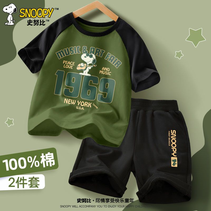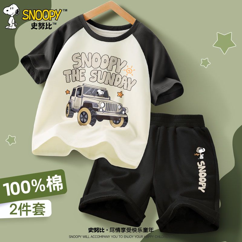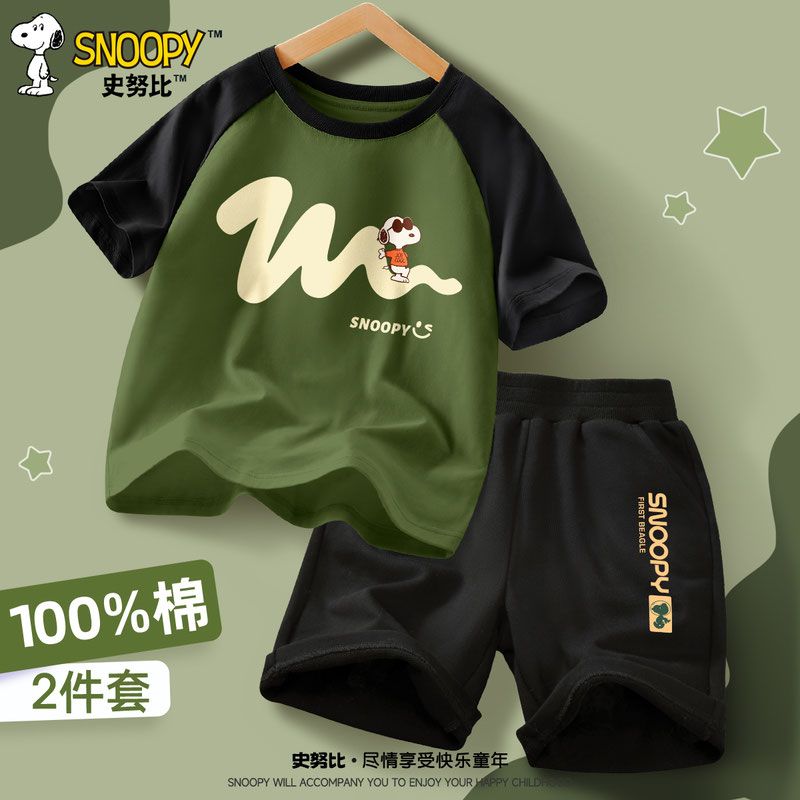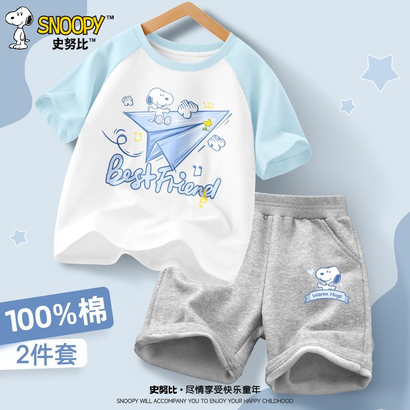 スヌーピー新作男の子スーツ夏ファッションかっこいいおしゃれキッズ半袖ショートパンツ子供カジュアル夏服