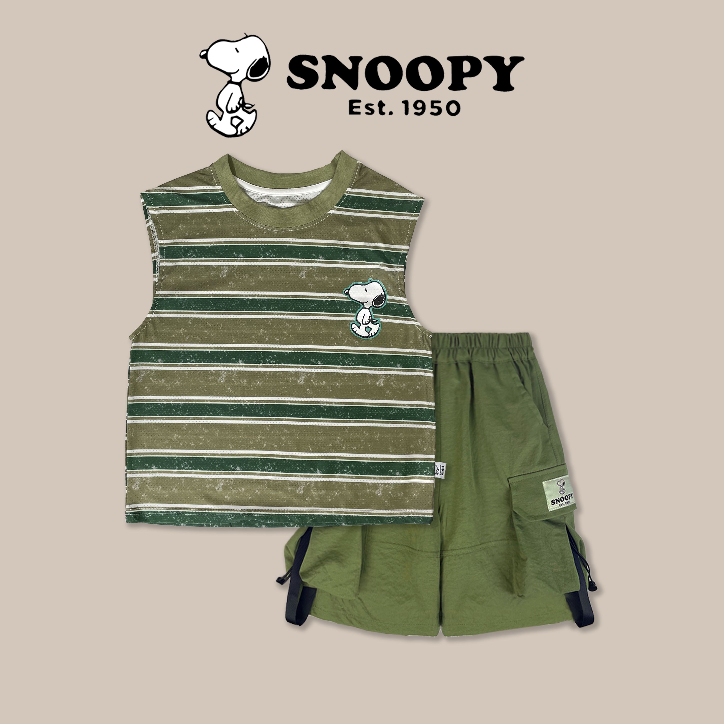 スヌーピー子供服夏2024子供男の子ストライプノースリーブチョッキパンツカジュアル2ピース新作スーツ