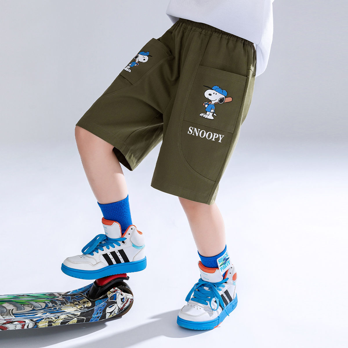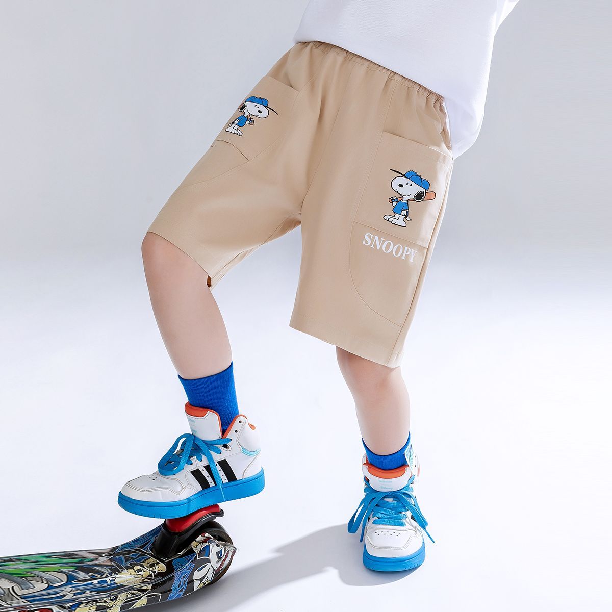 スヌーピー男児半ズボン夏の中で子供の新しい子供の5分のズボンの男の子のズボンの薄い金