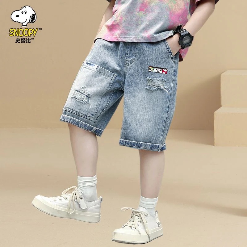 スヌーピー子供服男の子デニムショートパンツ夏服子供ズボンカジュアルミディアムパンツ2024男の子5分丈パンツ