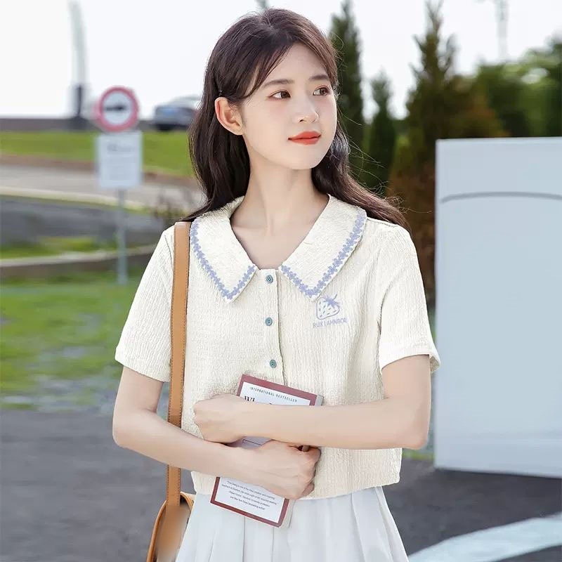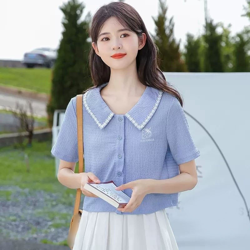 夏新しい 半袖シャツ レディース ゆったり 百掛け ショート丈 トップス 体型カバー カジュアル ブラウス アウター