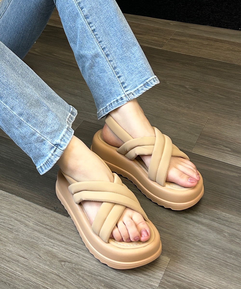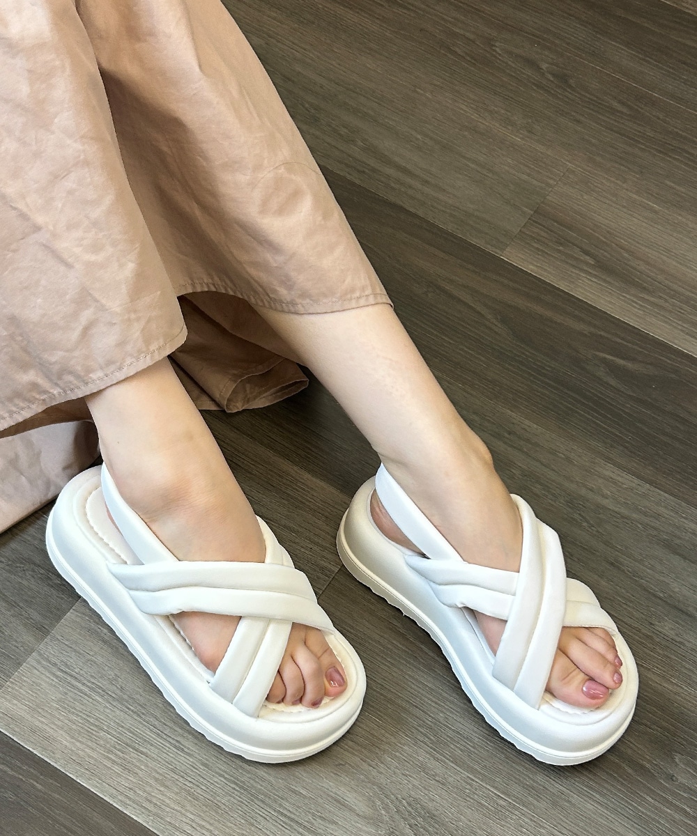 厚底 ダブルソール クロスデザイン パテッドサンダル