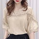 夏 半袖シャツ 春夏 オフィスブラウス レース パフスリーブ シフォン 通勤OL ゆったりシャツ 30代40代 ブラウス レディース 半袖トップス