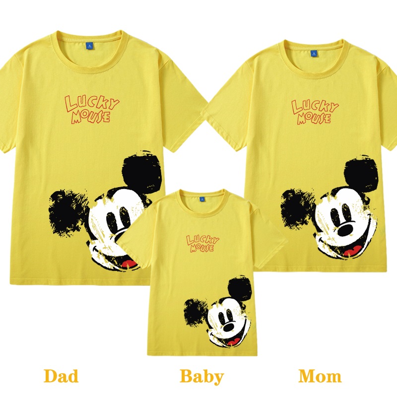 ディズニー12色ミッキーTシャツ   ペアルック カップル服 ディズニー  レディースママと娘 おそろい服 親子服 家族お母さん 子供  父と息子 韓国ファッション お揃い