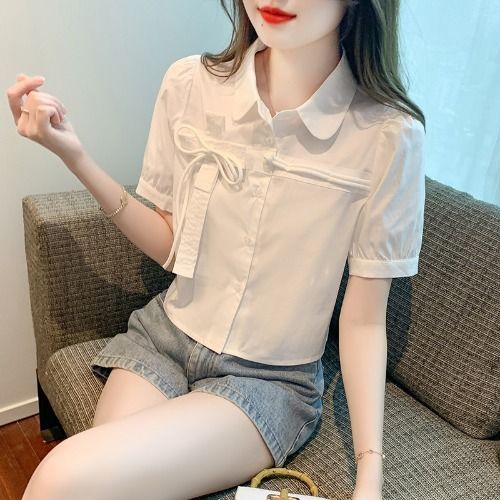 半袖シャツ 夏新しい スリミング 着痩せ ブラウス トップス 高級感 ショート丈 シャツブラウス 体型カバー 上着