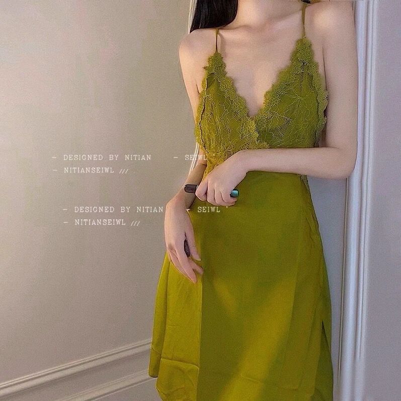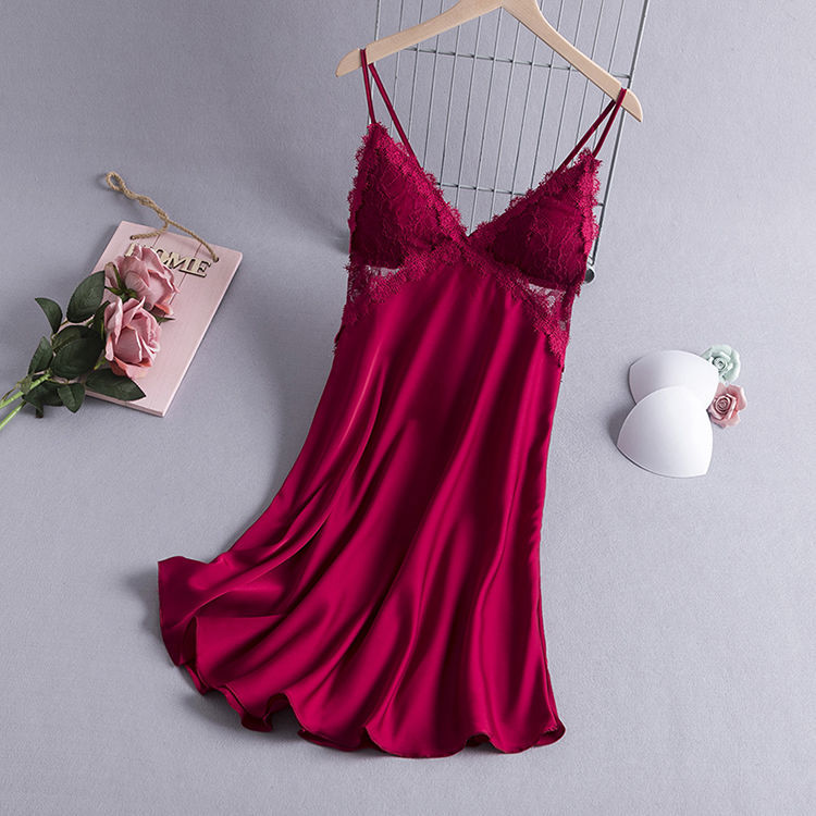 パジャマ ルームウェア 夏の新作レディーススリーパーセクシーレースキャミソールアイススリーパー胸当て付き薄型ルームウェア