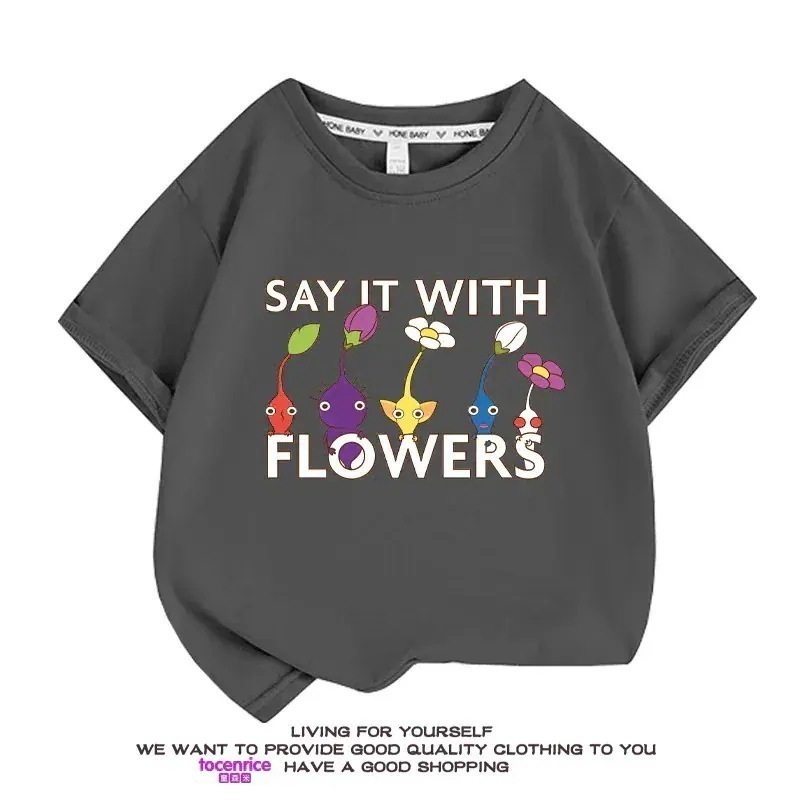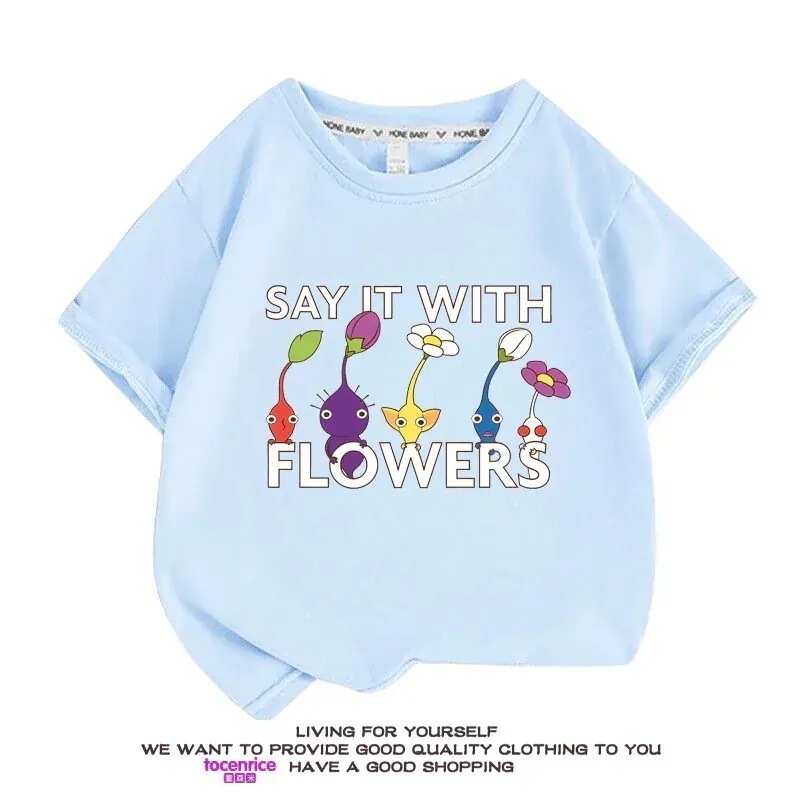 ピクミン Pikmin ピクミン 子供服 半袖Tシャツ バイカラー 通気性 肌着 柔らかい 丸首 男の子 女の子 子ども服 小学生 トップス