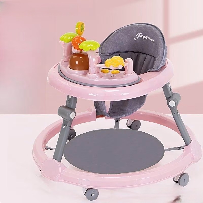 ベビーカー 赤ちゃん ベビー 室内 室外 高さ調整 ベビーウォーカー スタンダード 丸型 歩く練習 折り畳み式 静音 テーブル付き 円形 車 F