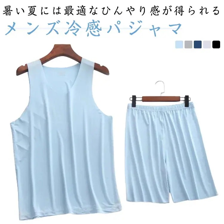 夏 パジャマ メンズ 部屋着 2点セット ウェア 上下セット シームレス タンクトップ 接触冷感 ひんやり 通気 吸汗速乾 ストレッチ ノースリーブ tシャツ ショートパンツ パンツ ハー