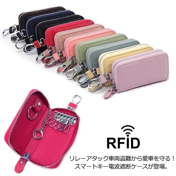 キーケース スマートキーケース スマートキー 電波遮断ケース 電波遮断ボックス キーボックス カラビナフック付き 車盗難防止 リレーアタック対策 不正アクセス防止 鍵 合皮 無地 全9色