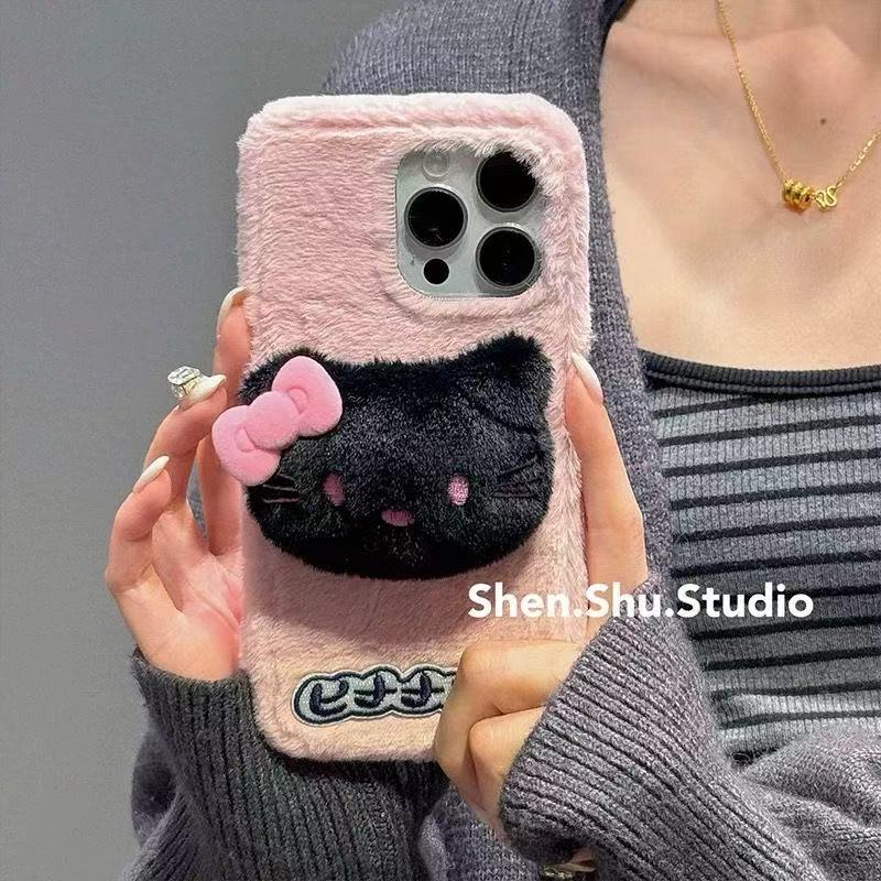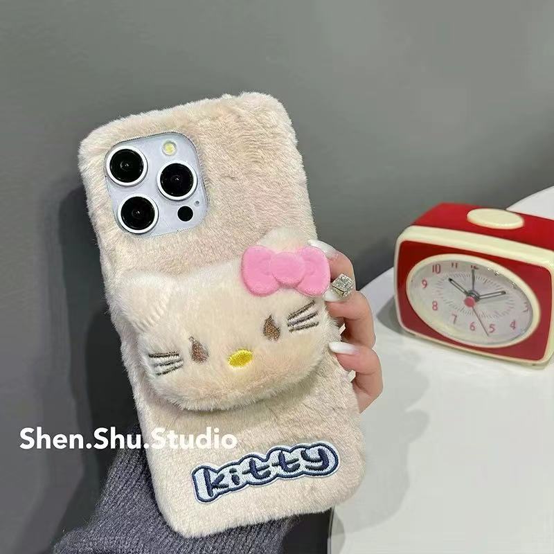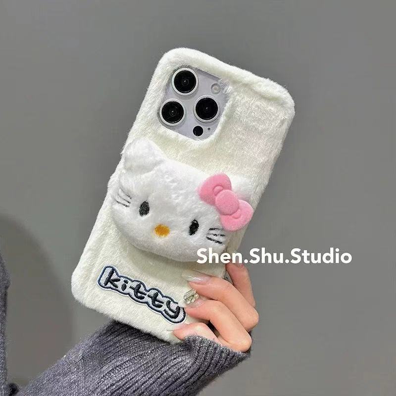 かわいい キティ iphoneケース もこもこ iphone16ケース iphone16proケース スマホケース キティちゃん iphone15ケース iphone14/13/12/11ケース