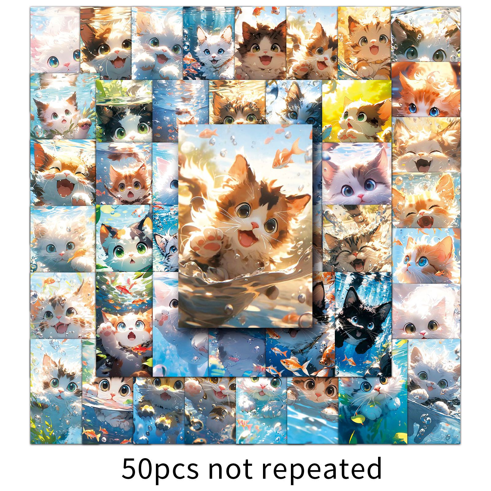 【送料無料】【3+1!5+2!】水遊びをする猫の落書きシール50枚かわいい猫の飾りコップ携帯ケースパソコンアイデアシール