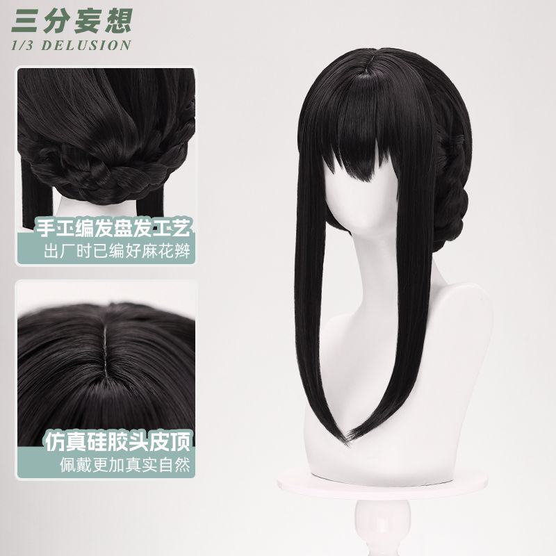 三点妄想スパイおままごとコススーツジョエルコスプレウィッグセンター分け黒ロングコスアクセサリー小道具