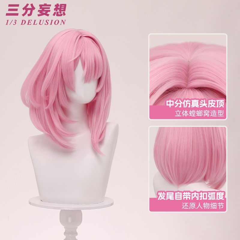 スリーポイント妄想 ゼロダンコスウィッグ ピンク ミディアムロング スカルプトップ ふわふわフェイクヘア 許翔 コスプレ