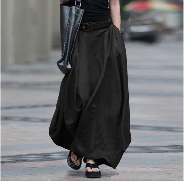 バルーンスカート ロングスカート 2XL スカート 通勤 ロング バルーン スカート 体型カバー マキシ丈 大人 マキシスカート 無地 大きいサイズ ポケット付き カジュアル ナチュラル S M L