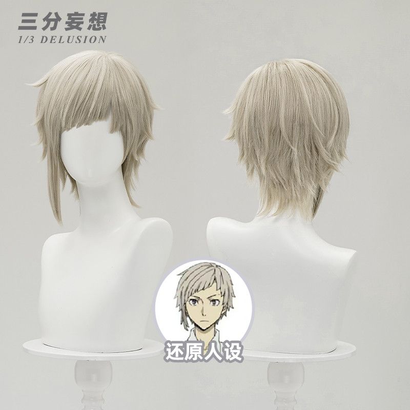 三点妄想 文豪ストレイドッグス 中島敦 特製レンコングレー やや裏返しでスタイリングしやすいコスウィッグ ヘアトップ