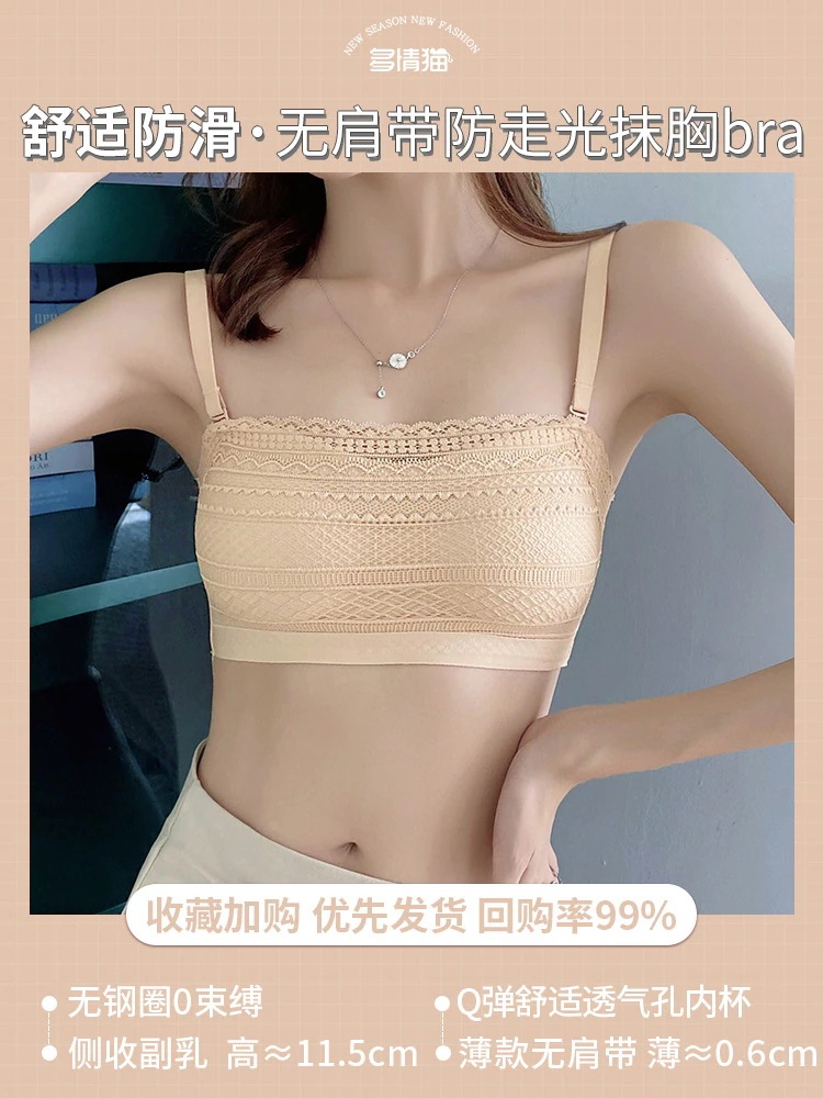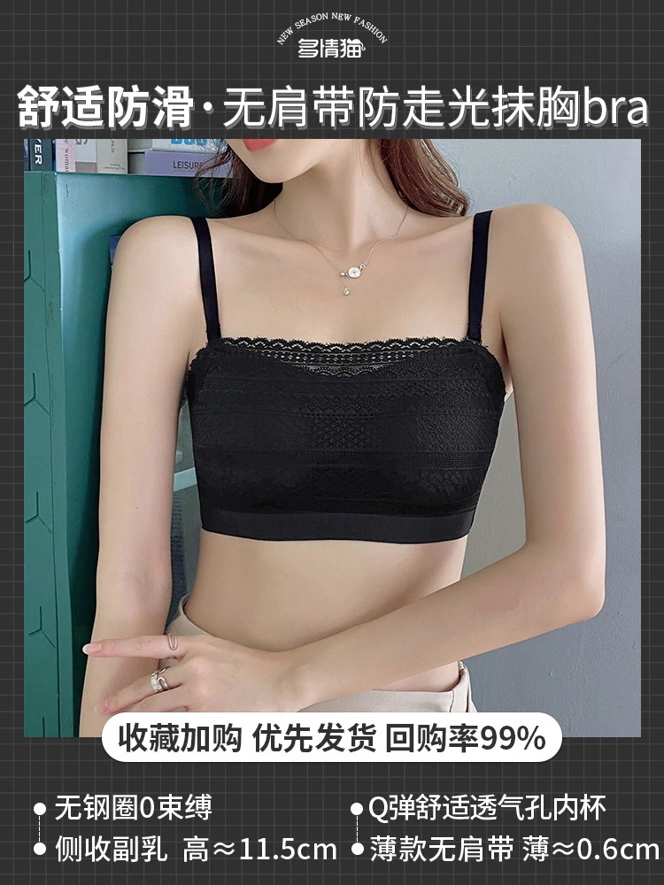 ナイトブラ ブラックテクノロジー レース ビスチェ 薄手のカップ ランジェリー レディース ストラップレス ノンスリップ ノンスチールリング ギャザー ラップブラ ガールズ ブラジャー