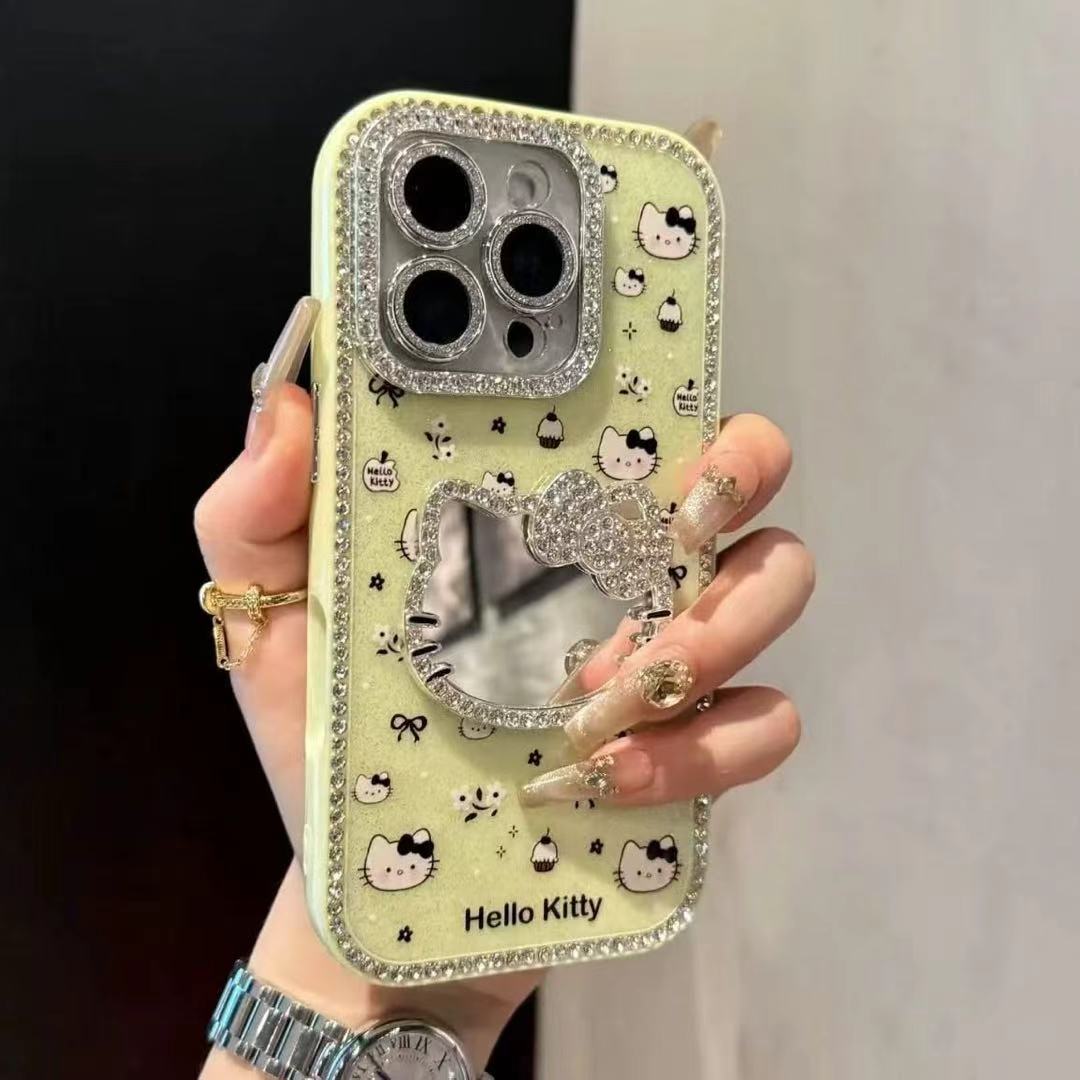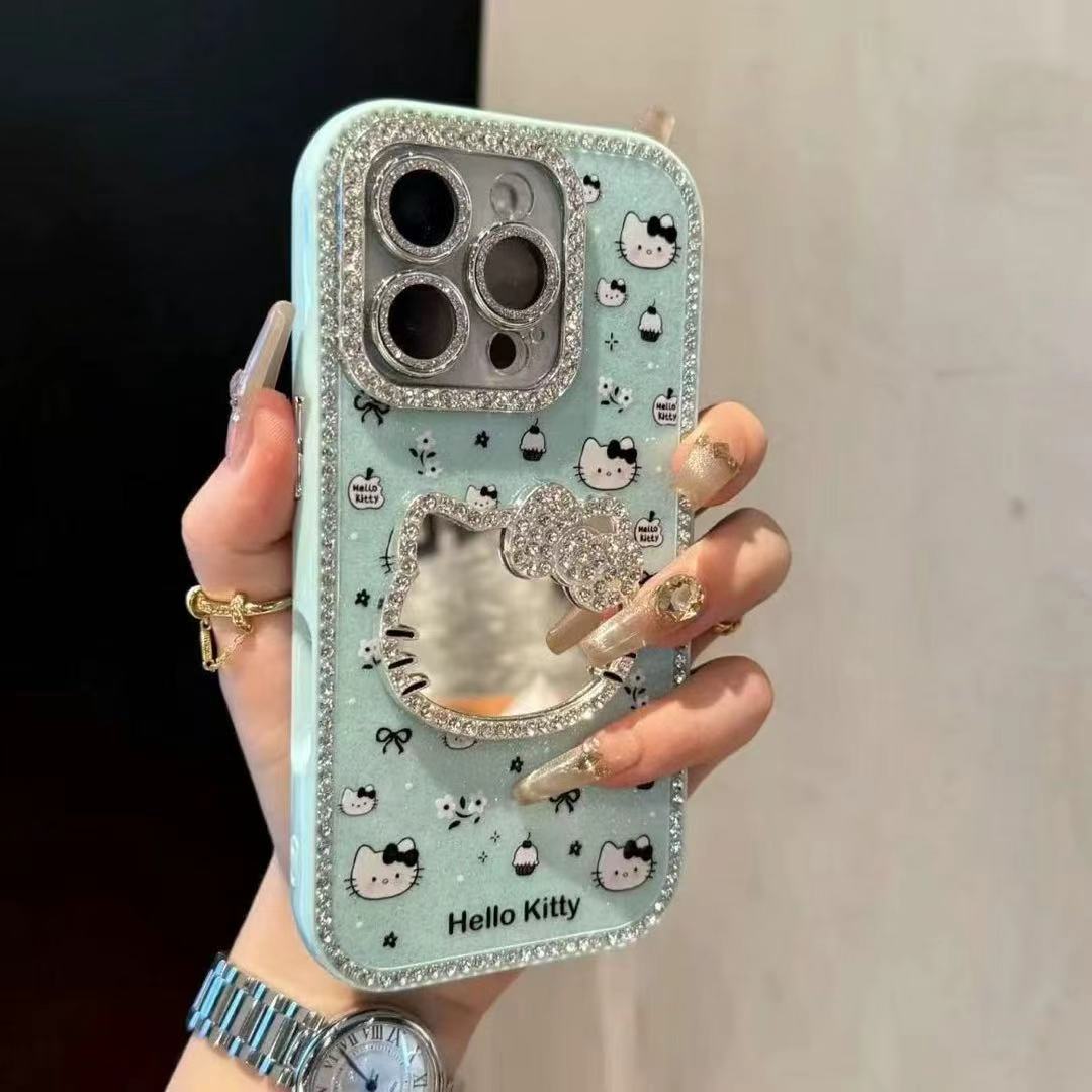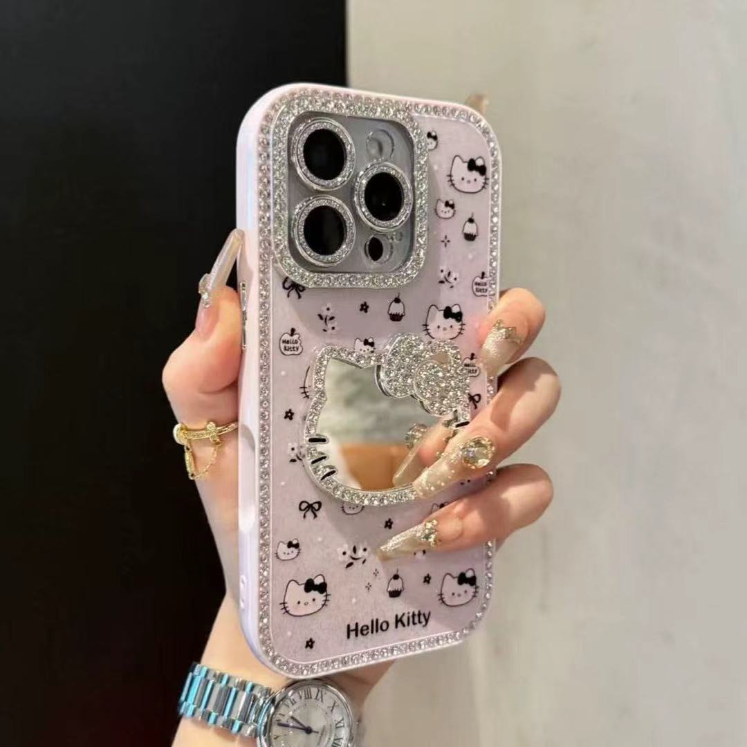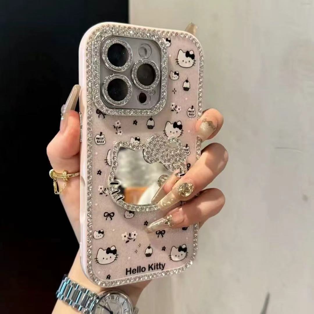 iphone16ケース キティちゃん 可愛い iphoneケース ハローキティ 鏡 スマホケース iphone15ケース iphone16proケース キティ iphone14/13ケース