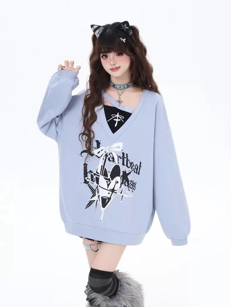 トレーナー レディース パーカー Vネック 長袖 ゆったり 韓国ファッション プルオーバー 春秋 トップス 量産型 地雷系 かわいい 原宿系