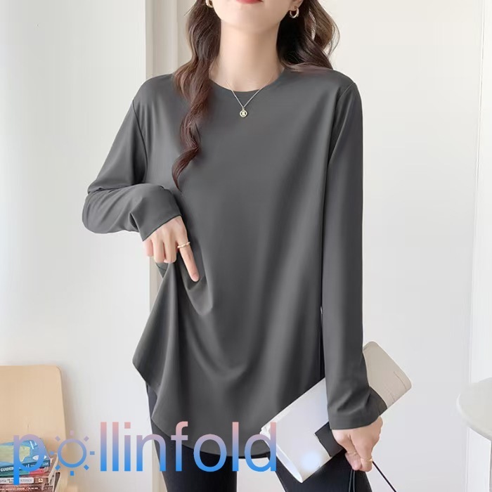 長袖 Tシャツ インナー カットソー ロング丈 カットソー チュニックロンT レディース 肌触り 秋服 トップス ロングTシャツ ロンt ロンTゆったり レイヤードトップス 大きいサイズ