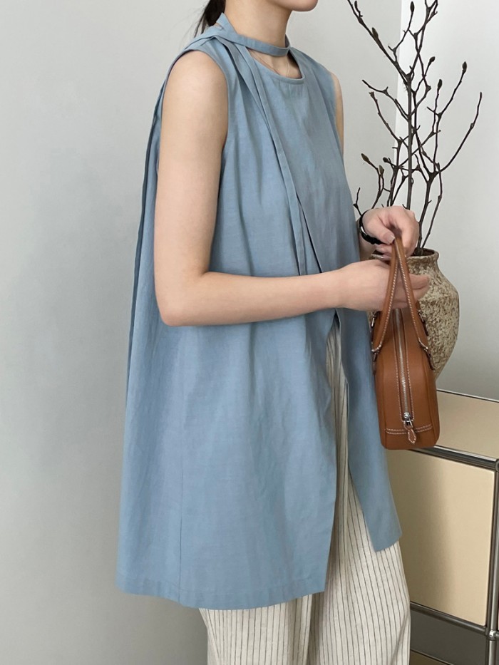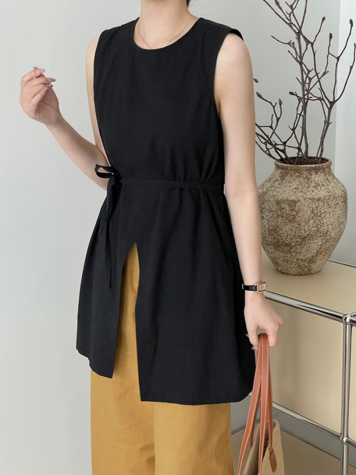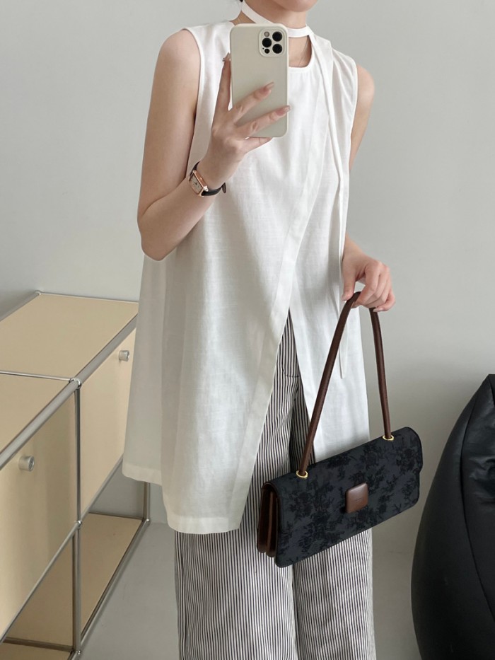 ノースリーブ チュニック 前スリット 夏 レディース トップス ゆったりめ 不規則 薄手 涼しい
