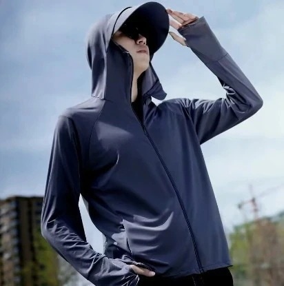 UV 遮光100% パーカー 着るだけ-7℃ 冷感 メンズ 日焼け止め服 長袖 ラッシュガード 紫外線対策 冷房対策涼しい UVカット アウター メッシュ 素材 通気口 指穴 つば