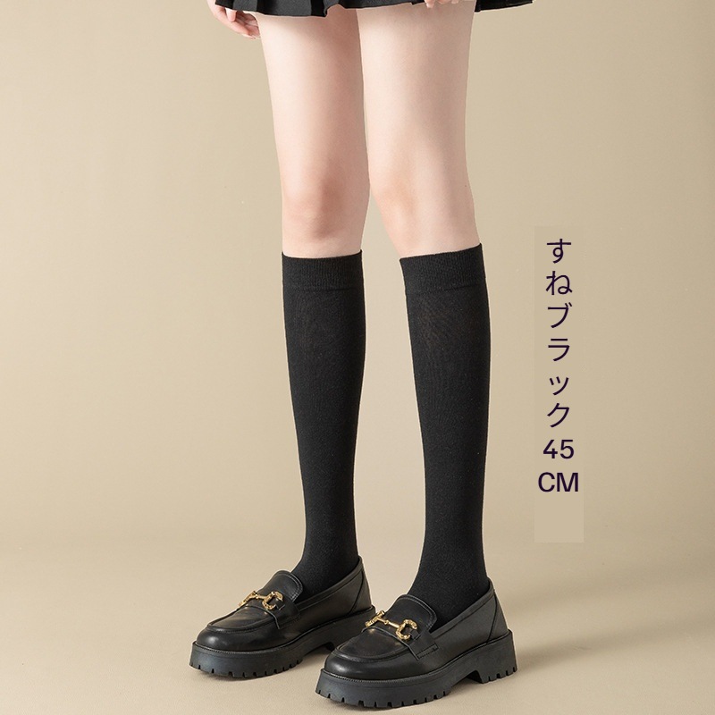 JKソックス レディース 春夏 綿100% 着圧 ふくらはぎサポート 中丈/ニーソックス 黒白 制服対応