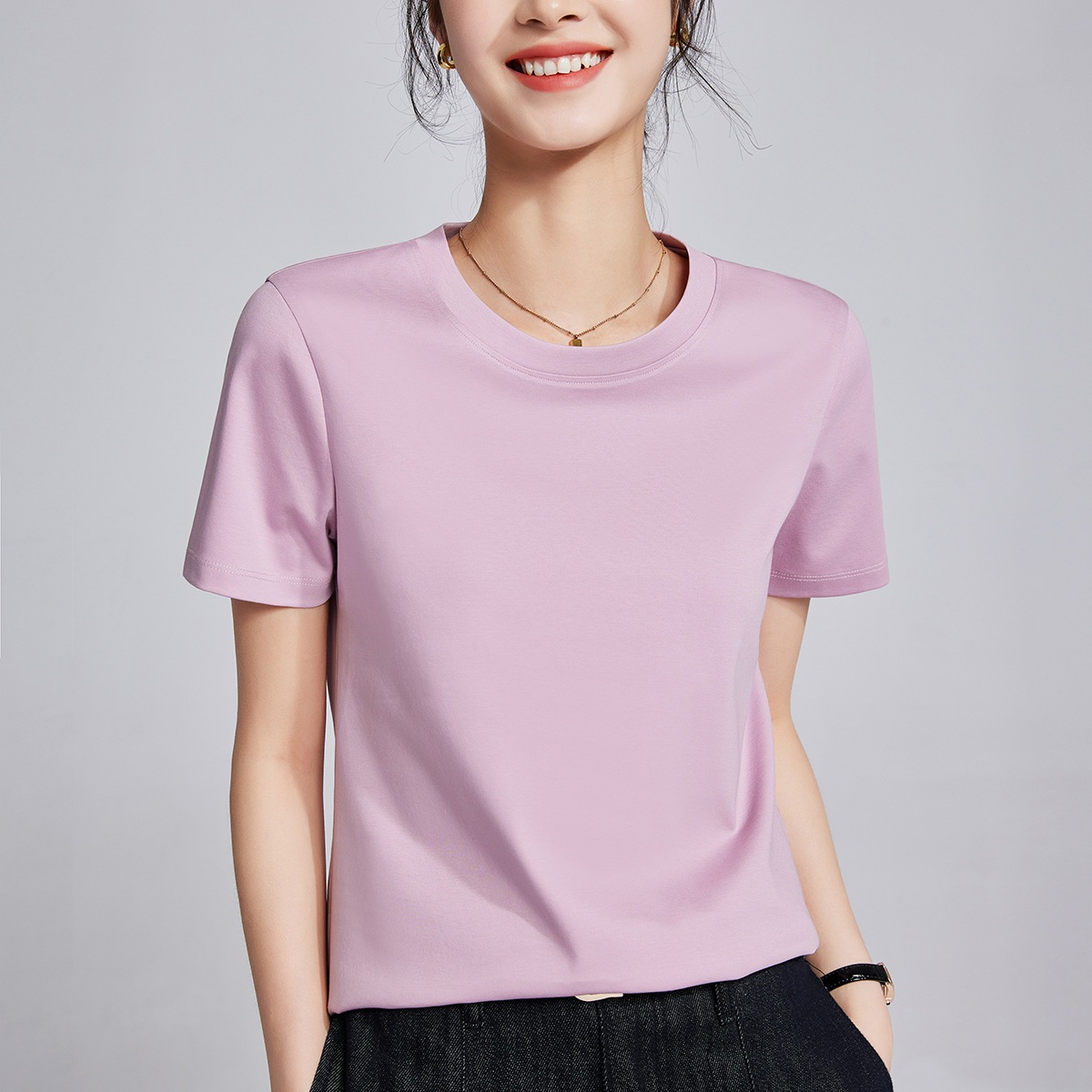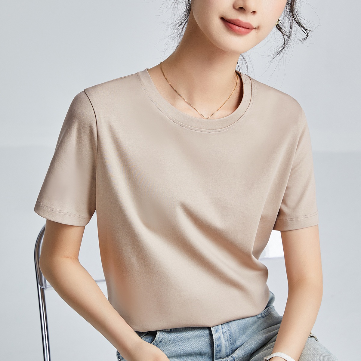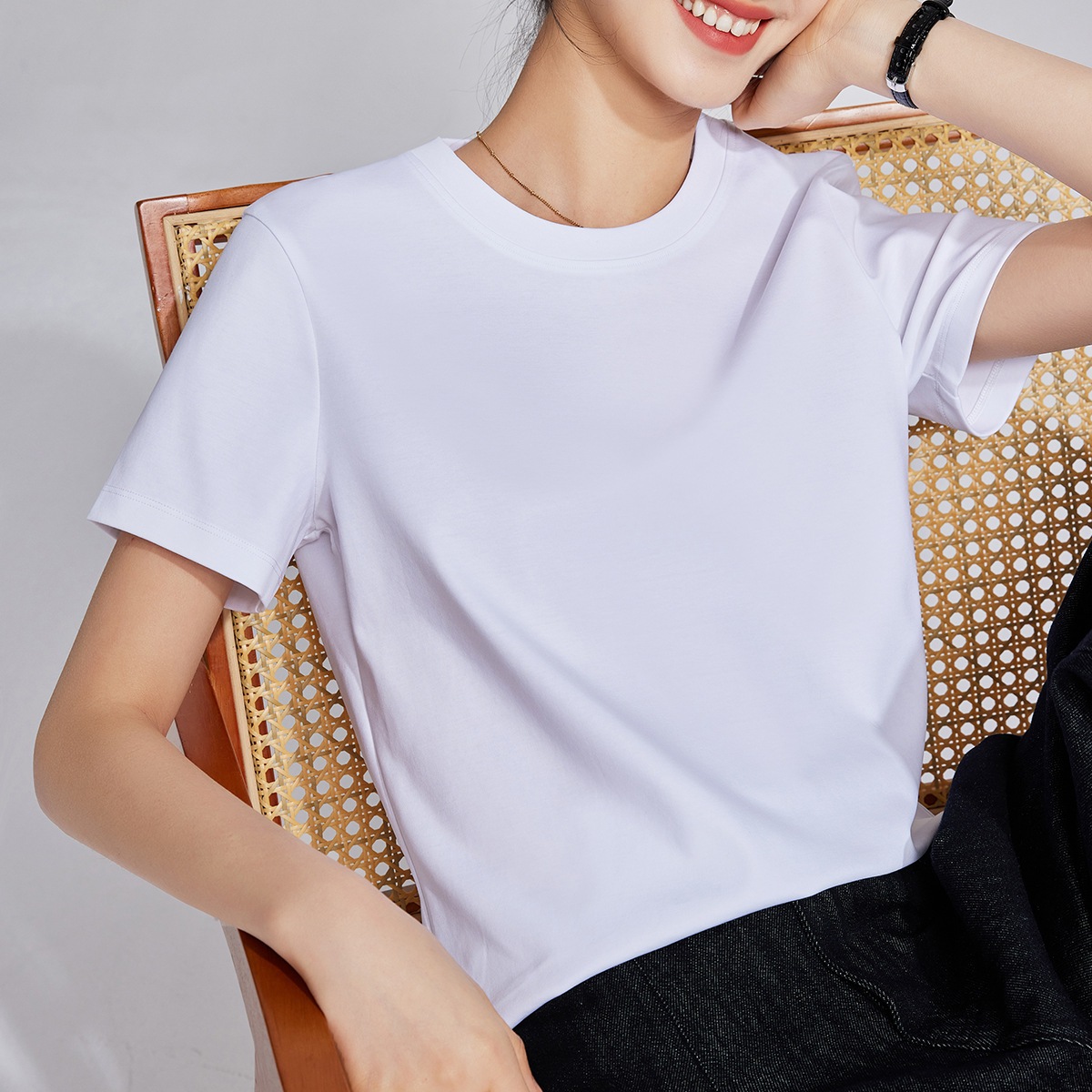 液アンモニア加工Tシャツ レディース 正シルエット 純白 春夏 高級綿 クルーネック 涼感 インナー兼用