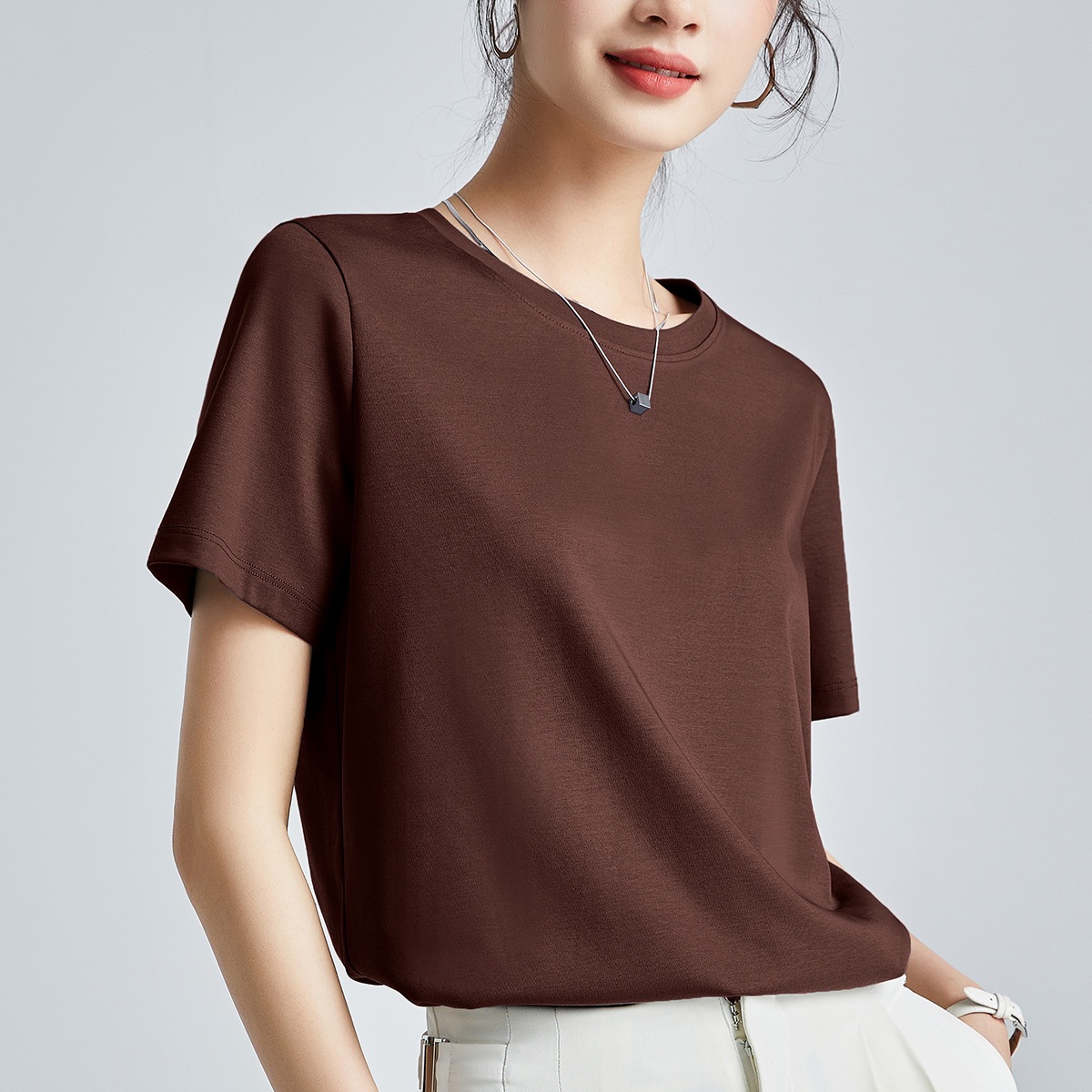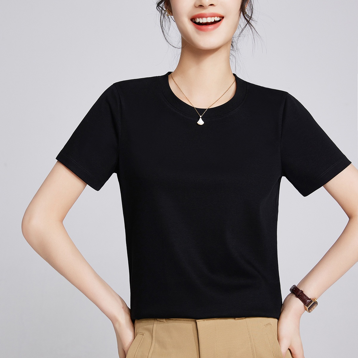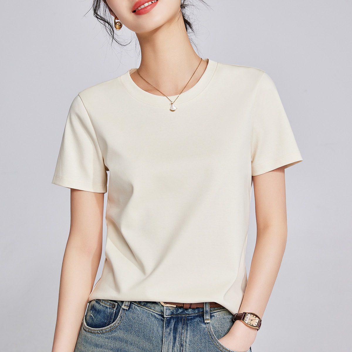 液アンモニア加工Tシャツ レディース 正シルエット 純白 春夏 高級綿 クルーネック 涼感 インナー兼用