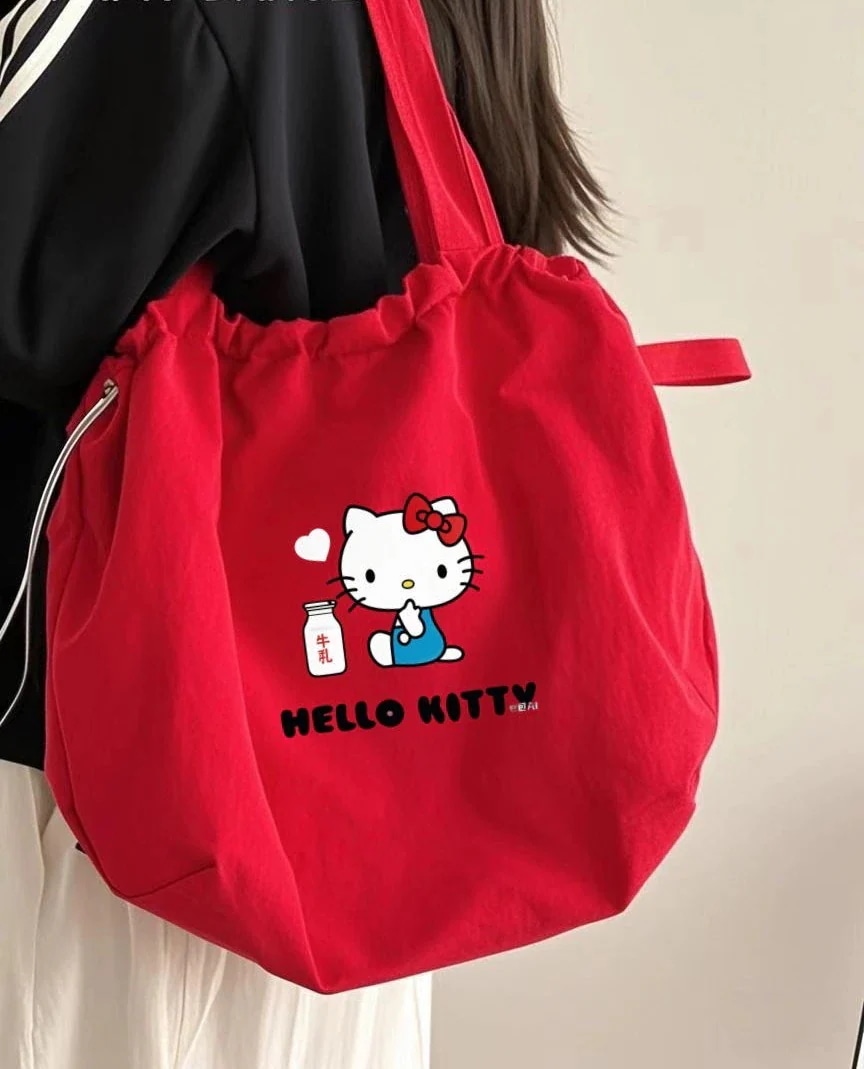 キティのショルダーバッグリュックins帆布バッグ女性の甘いハンドバッグショルダー学生のカジュアルな授業用ポータブル本トートバッグ誕生プレゼント