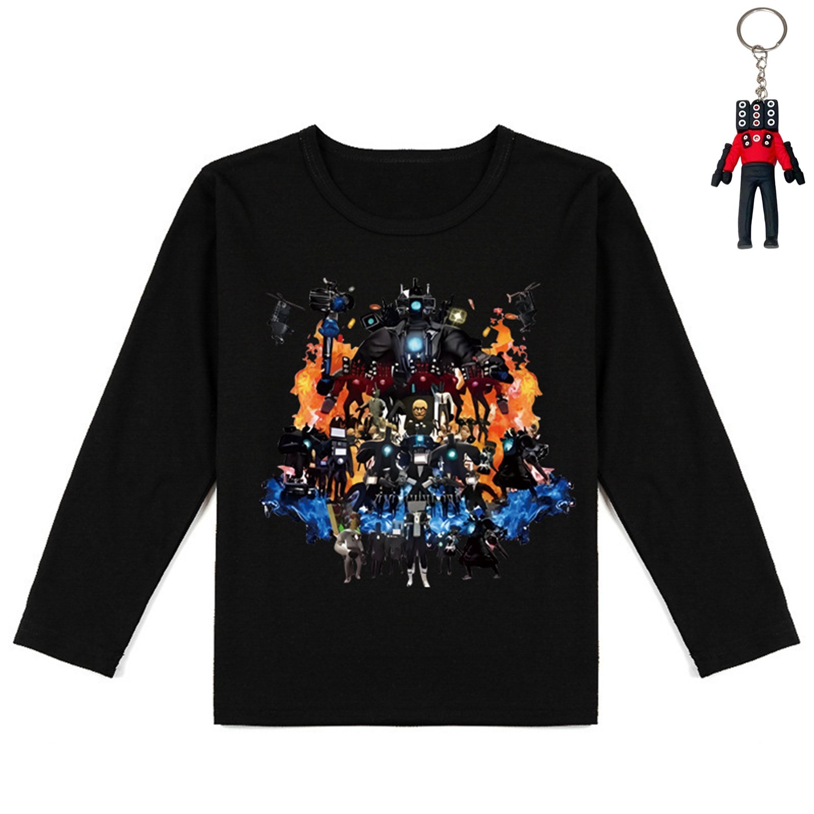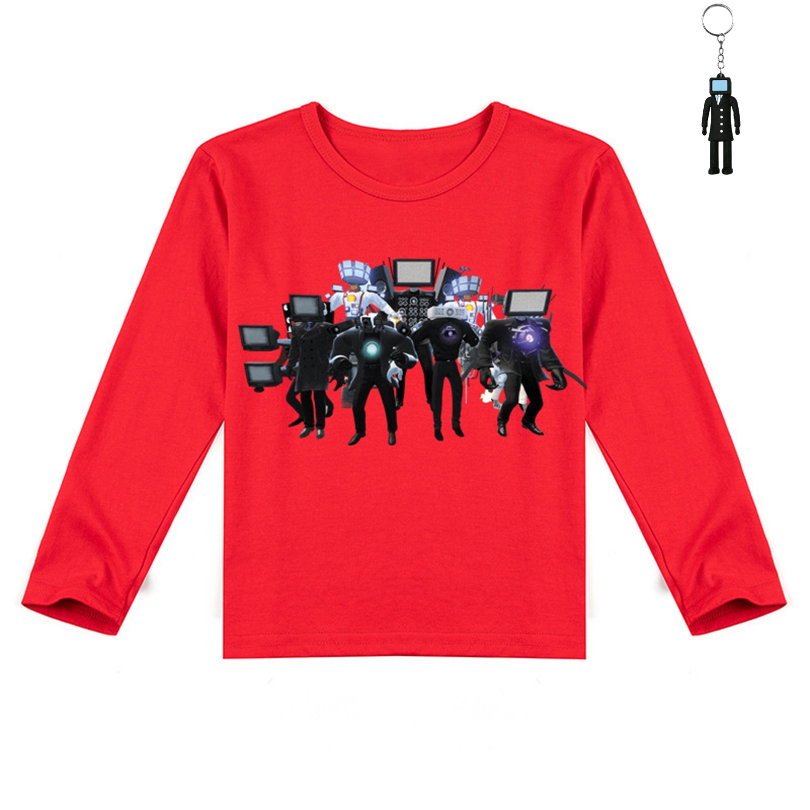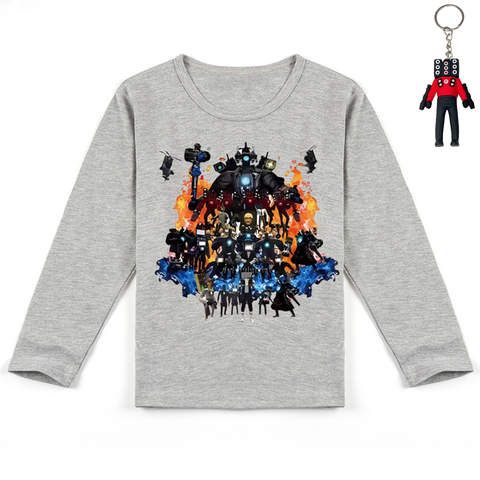スキビディ トイレ 服 【キーホルダー付き】 モニターマン グッズ 子供服 綿 長袖 薄手 春秋 キッズ 男の子 女の子 ボーイズ トップス 誕生日 プレゼント100cm -160cm