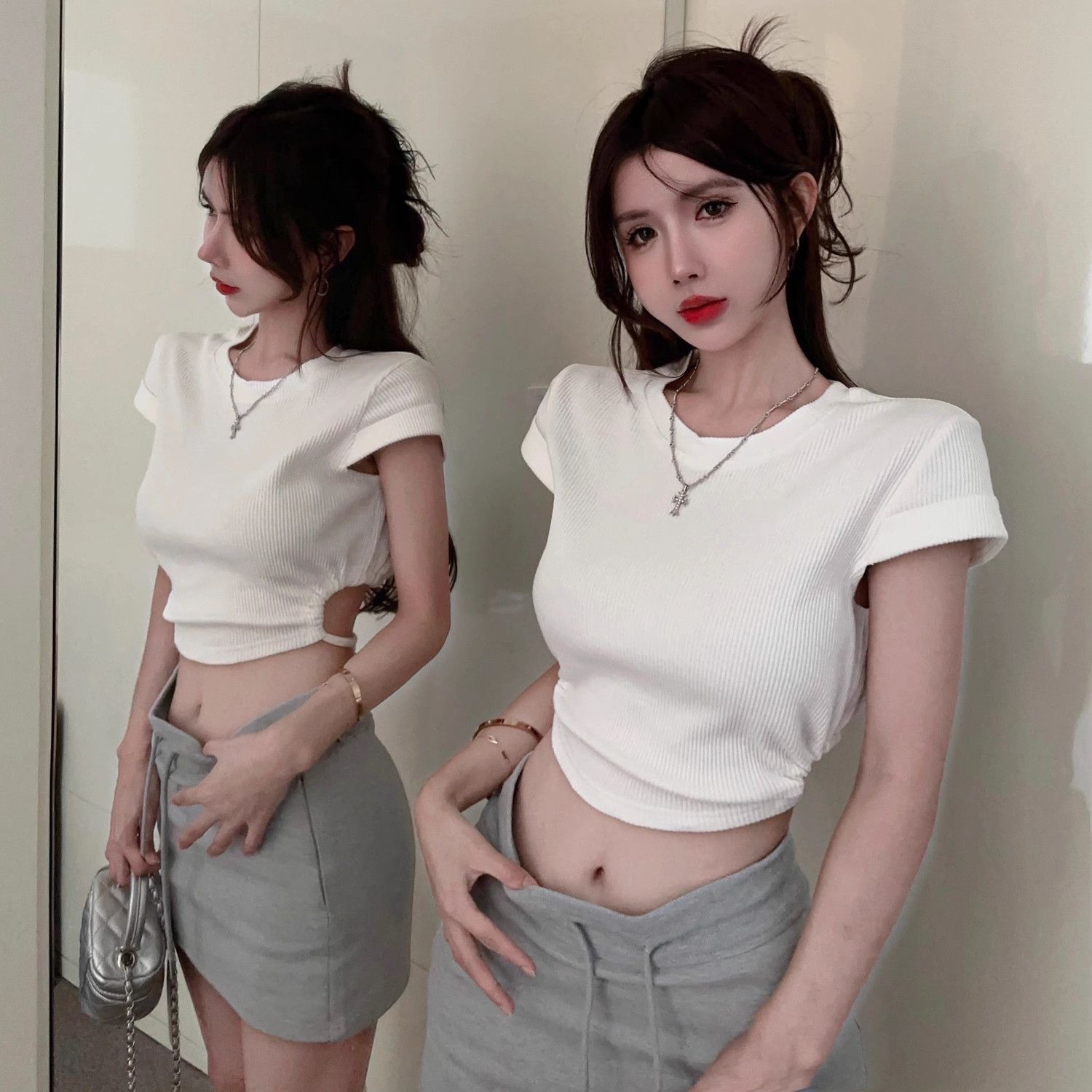 純欲 半袖Tシャツ 夏新作 レディース プリントTシャツ ギャル ショート丈トップス スリミング Tシャツ カットソー