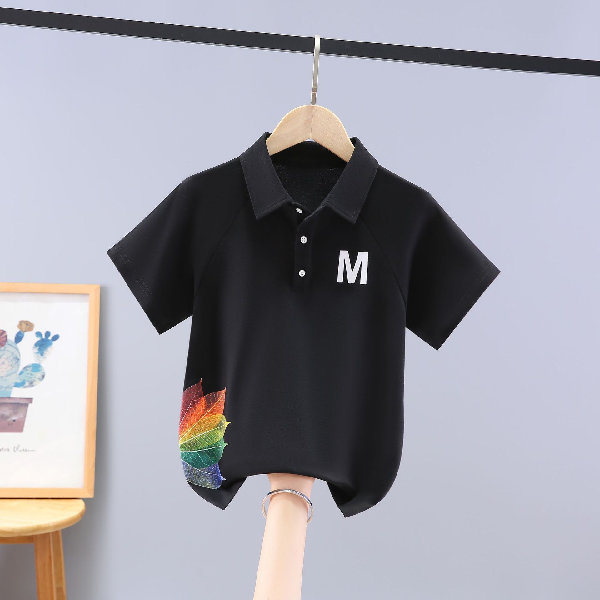 男の子半袖夏ポロ襟夏服2025新スタイル中大サイズの子供用おしゃれなベビートップス在庫ありカジュアルラビットファー