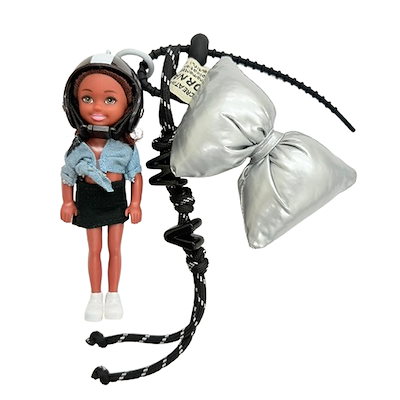リトルガール ブラックヘルメット シルバー リボン 人形チャーム付き YN-019-3
