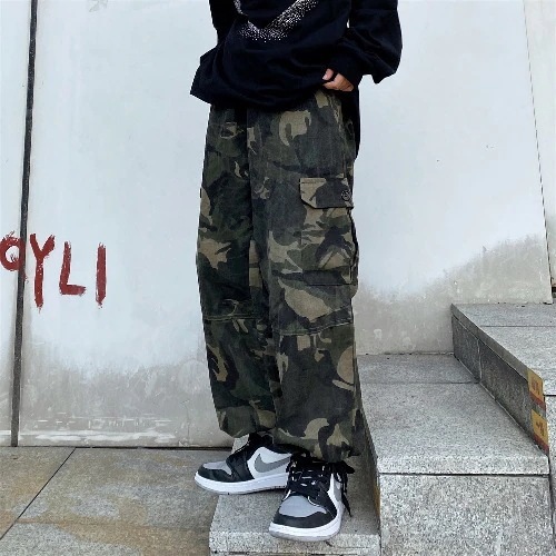 迷彩柄 カーゴパンツ ロングパンツ ウエストゴム 裾ゴム 男女兼用 ゆったり ダンス カジュアル