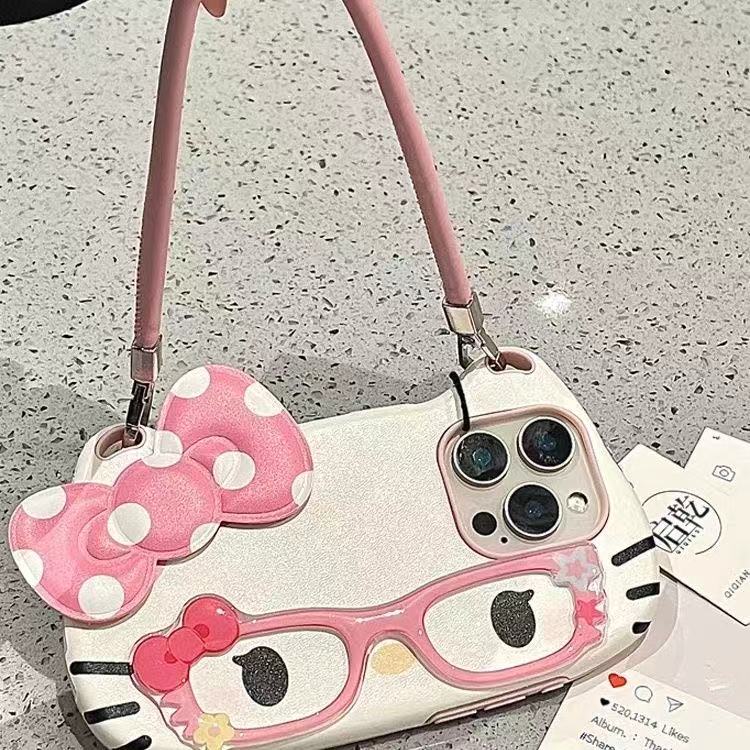 かわいい iphoneケース キティ ショルダーストラップ付き スマホケース キティちゃん iphone16ケース iphone16proケース iphone15/14/13 ハローキティ