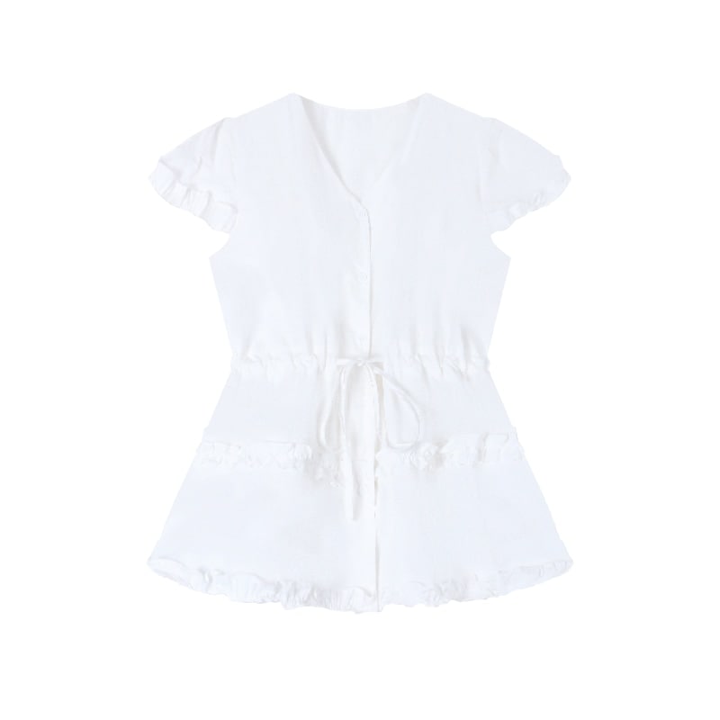 新作Tシャツ 半袖 パフスリーブ スウィートバブルスリーブシャツレディース夏の新作ドローストリングトップス
