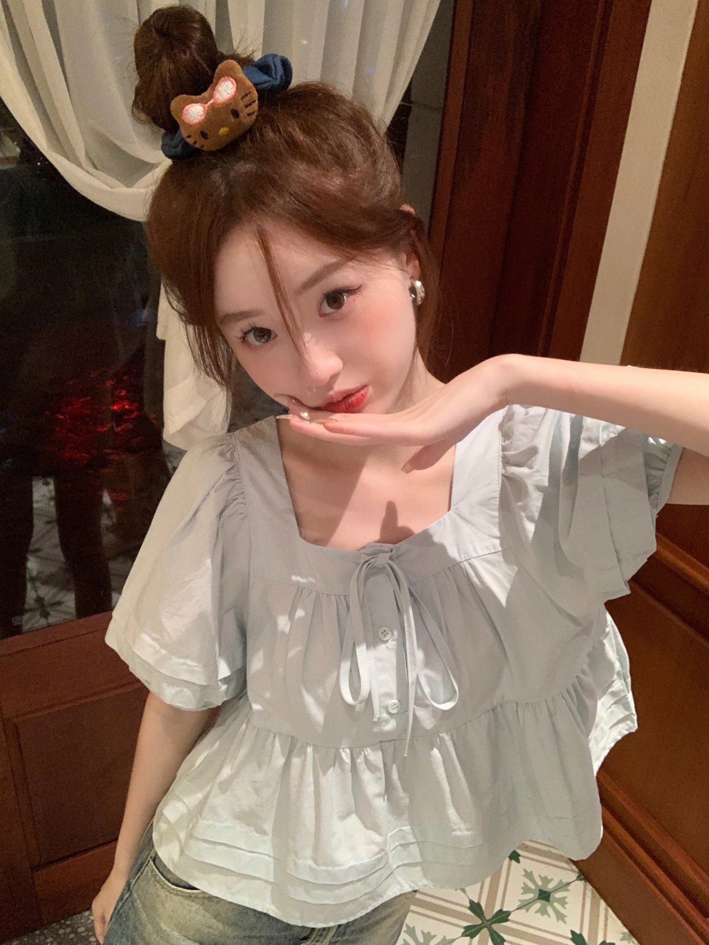 新作Tシャツ 半袖 パフスリーブ バブルスリーブトップ女性夏の半袖シャツショートシックブラウス