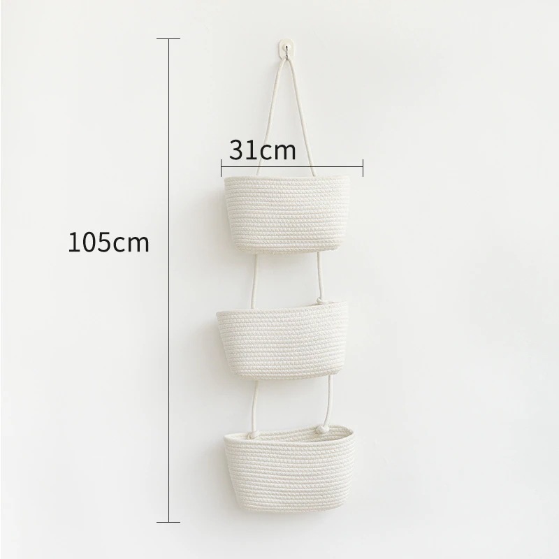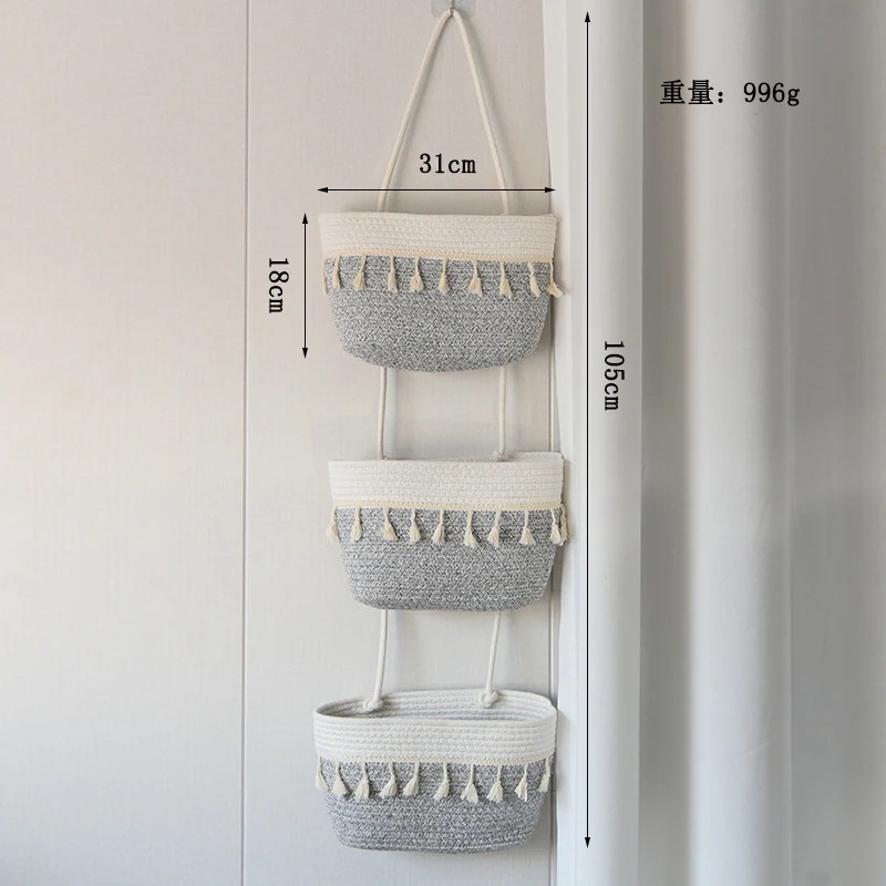 壁掛けバスケット 収納 整理 雑貨 綿糸 吊り下げバスケット 装飾的な壁面収納バスケット トリプル 家庭用吊り下げ収納