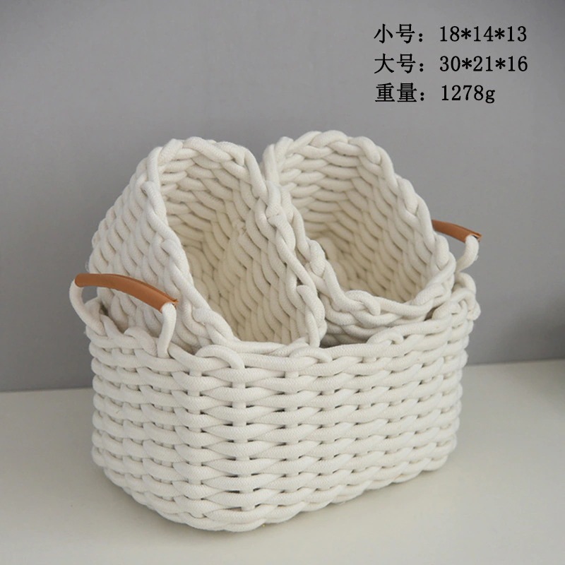 北欧卓上スナック雑貨編みバスケット 粗目コットンロープ収納ボックス コスメ収納バスケット 玄関 鍵収納バスケット 収納