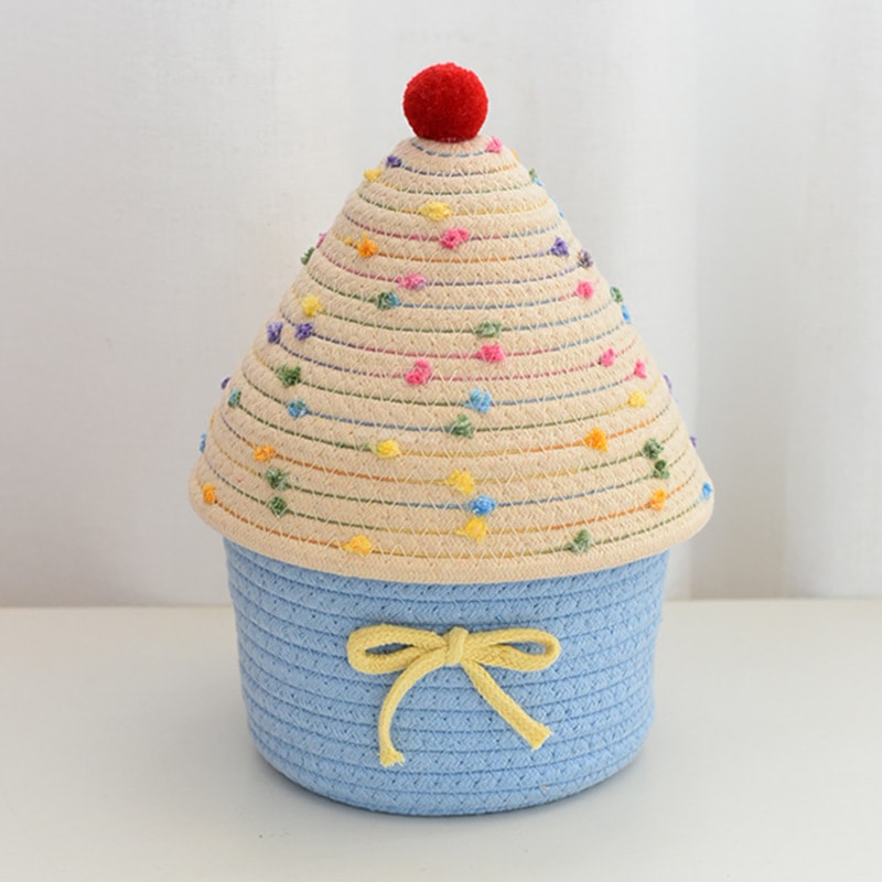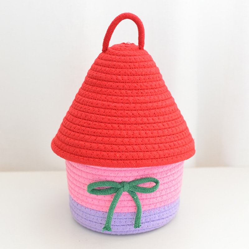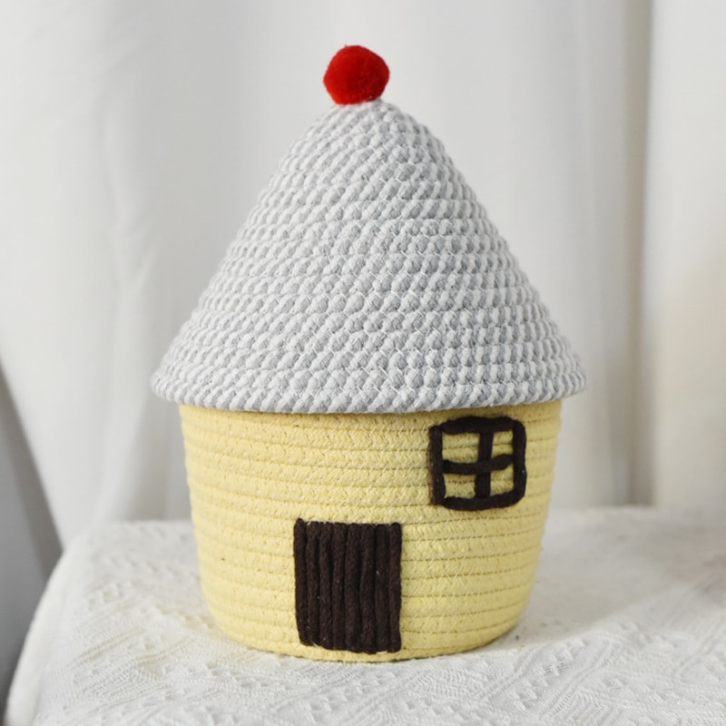 ホームかわいい創造的なリビング ルーム ベッドルームふた付き小さな家ストレージ バスケット多機能装飾的なバスケットを織りの綿の糸