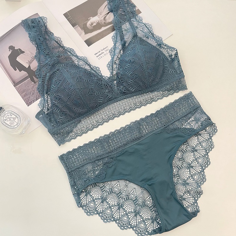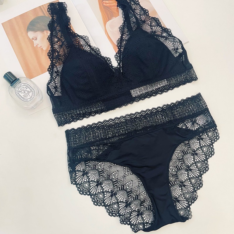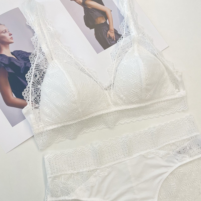 o 薄いセクシーな中空レースフレンチトライアングルカップ下着レディースノーリムブラジャーライトサマースーツ