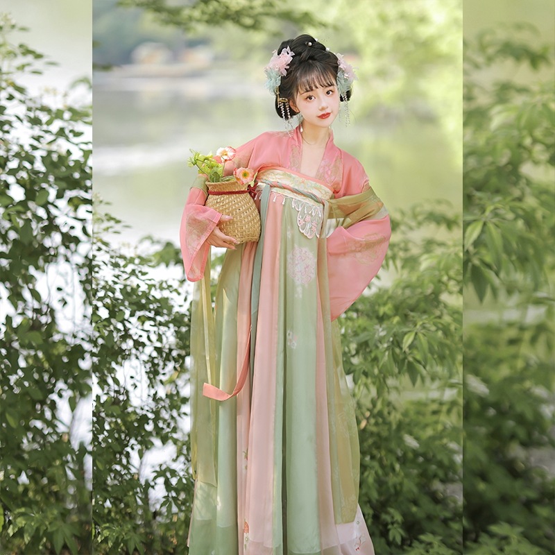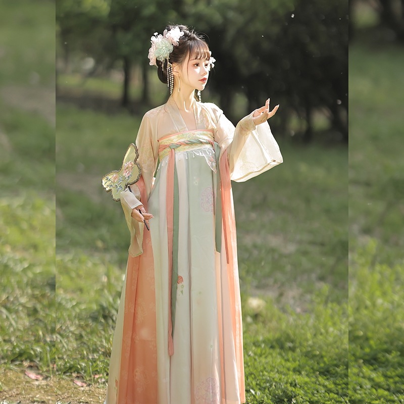 セットアップ 漢服女【春水蕩】唐製胸開きスカート刺繍プリント夏のデイリー