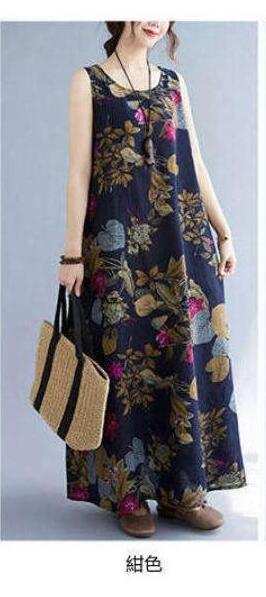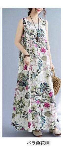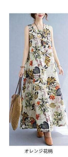 レディース ロング ノーブ ロング丈 体型カバー ゆったり ゆるっと 綿麻調 花柄 大きい
