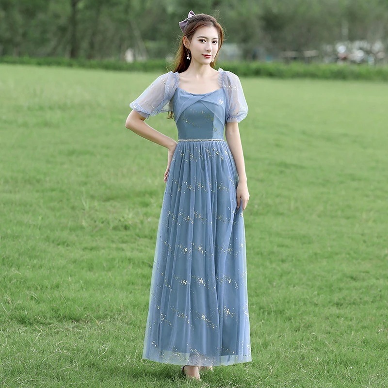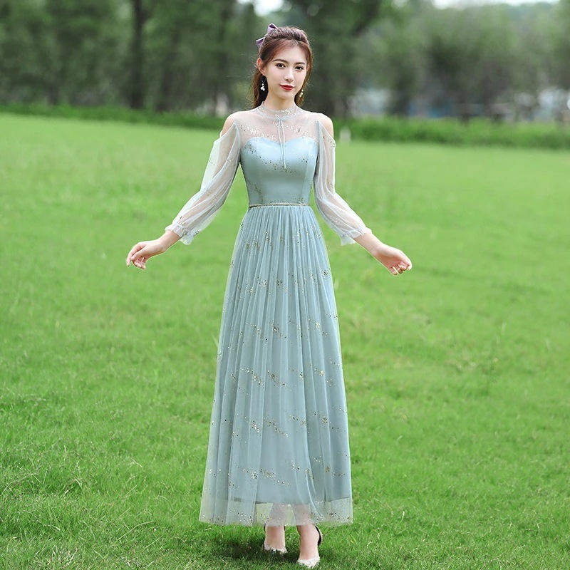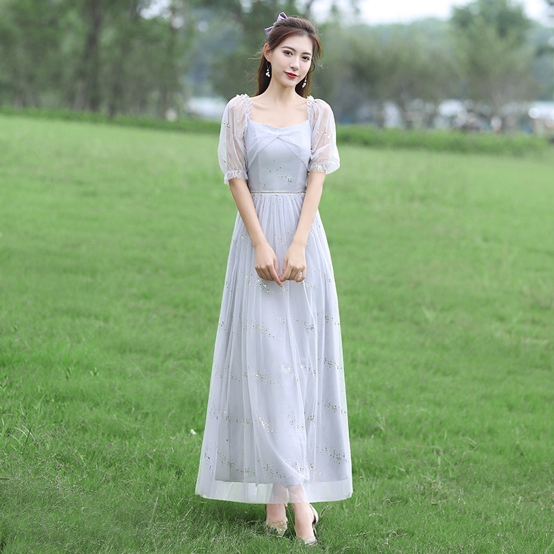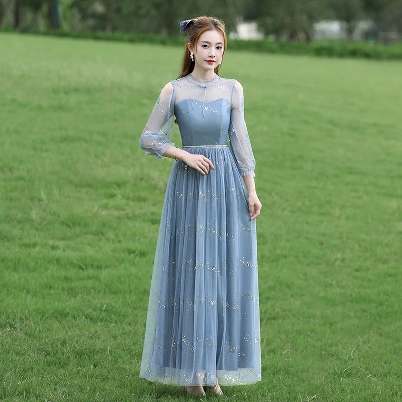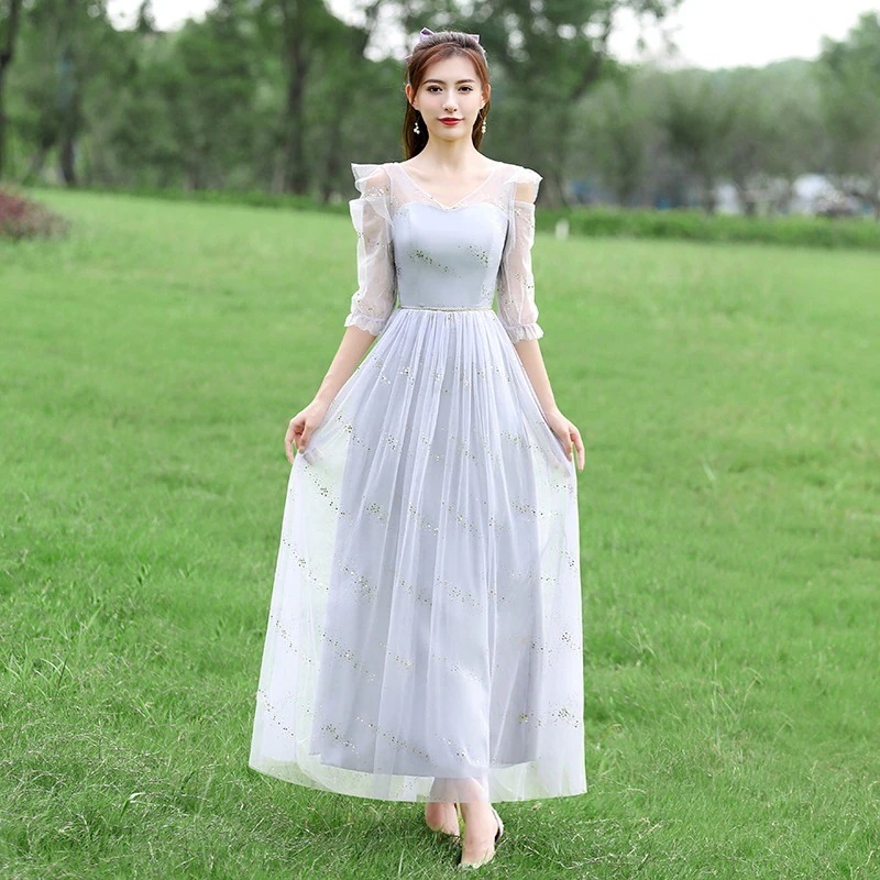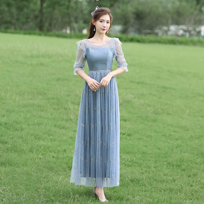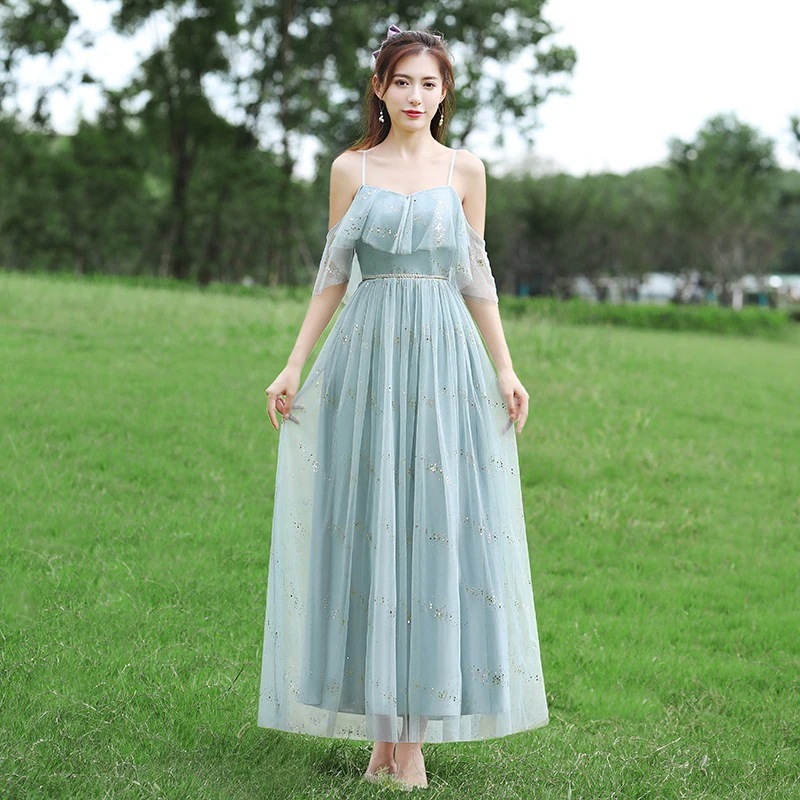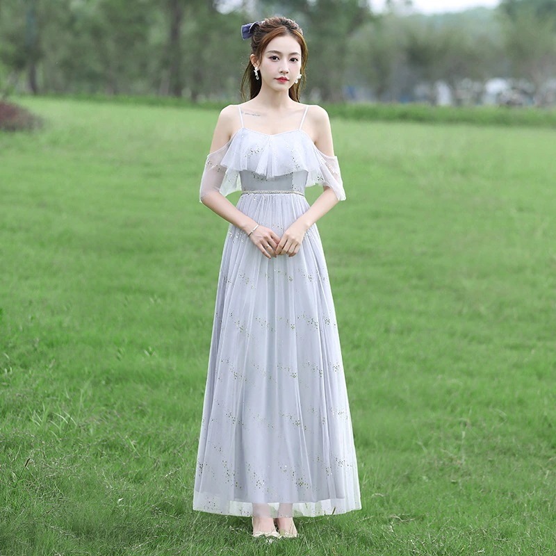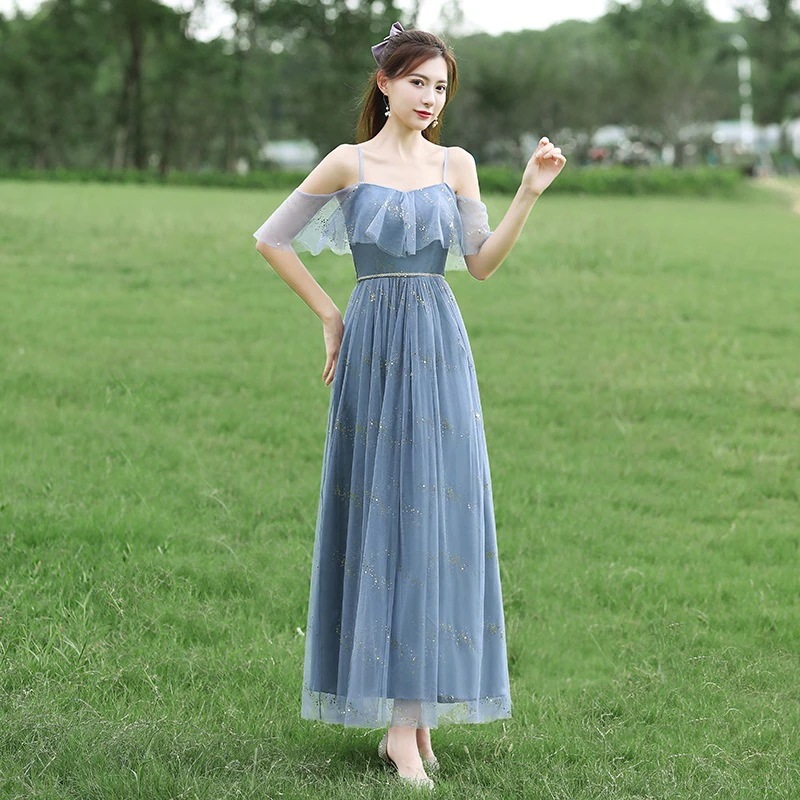 ブライズメイド ドレス ウェディングドレス ロング フォーマルドレス パーティードレス Aライン フレア 結婚式 ワンピース マキシ丈 ロング丈 記念日 ダンス衣装 あずき色 くすんだブルー グレー