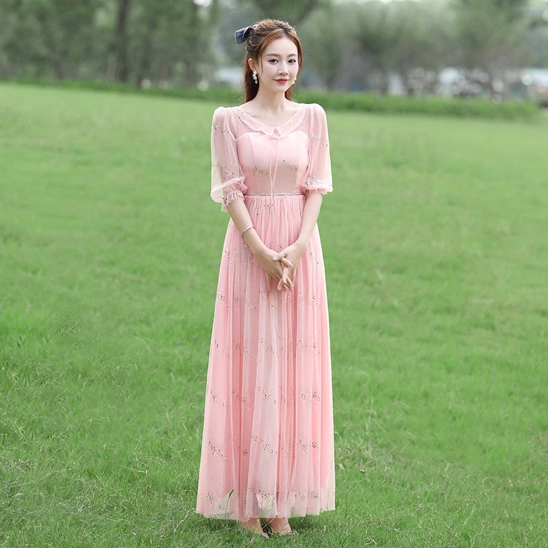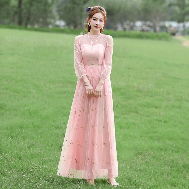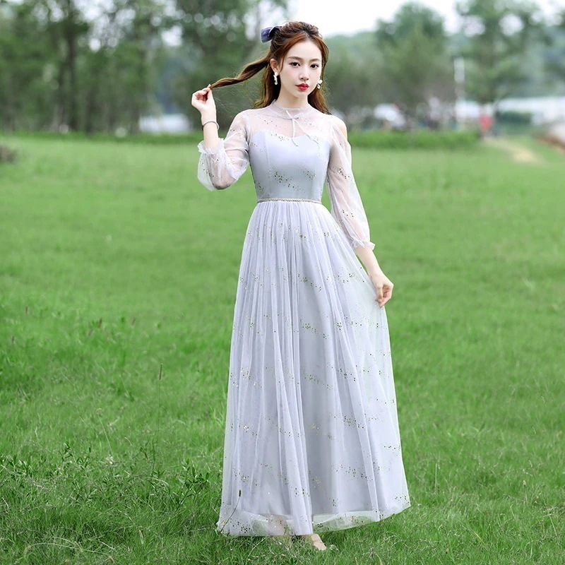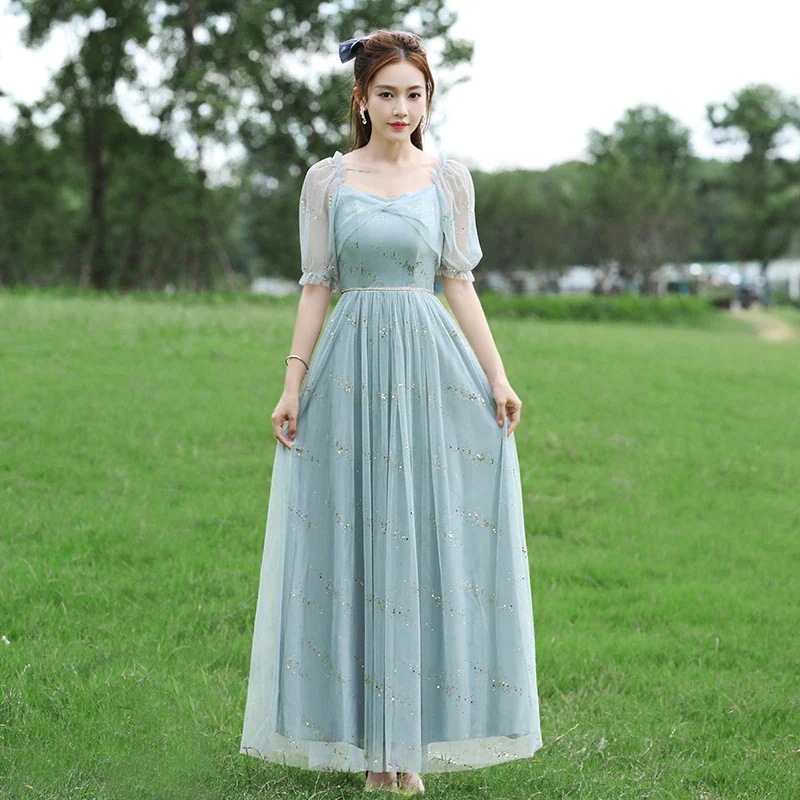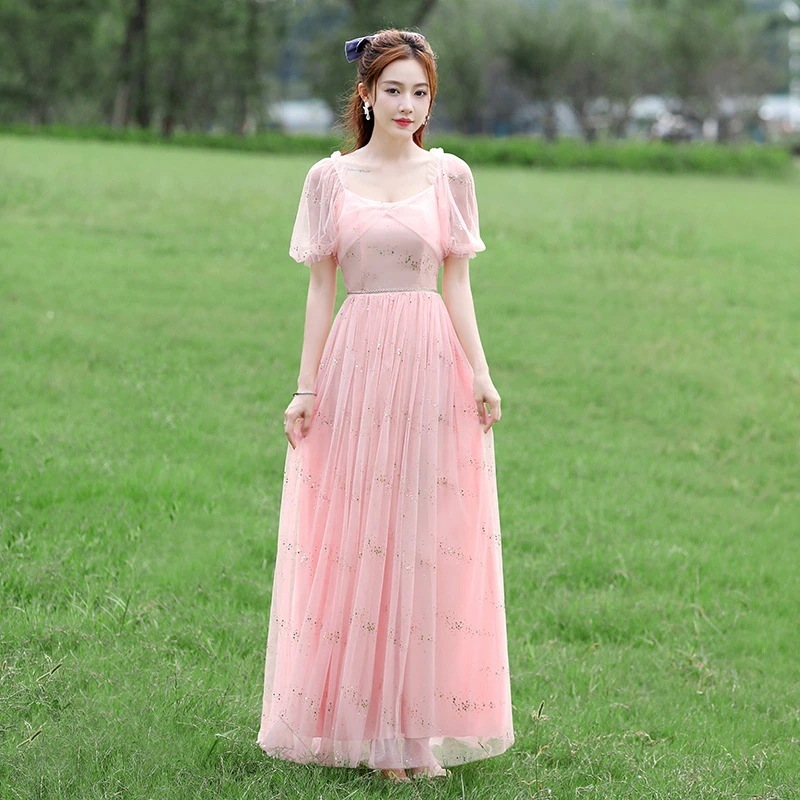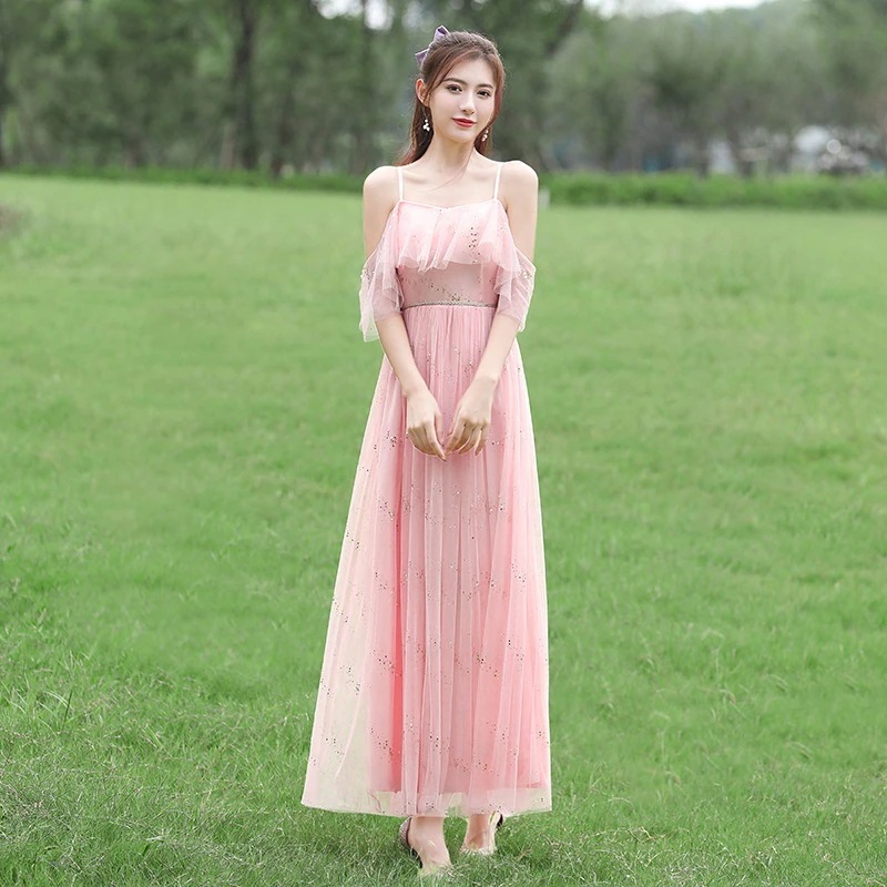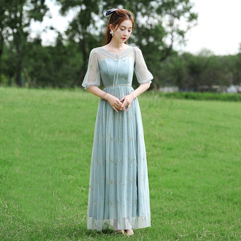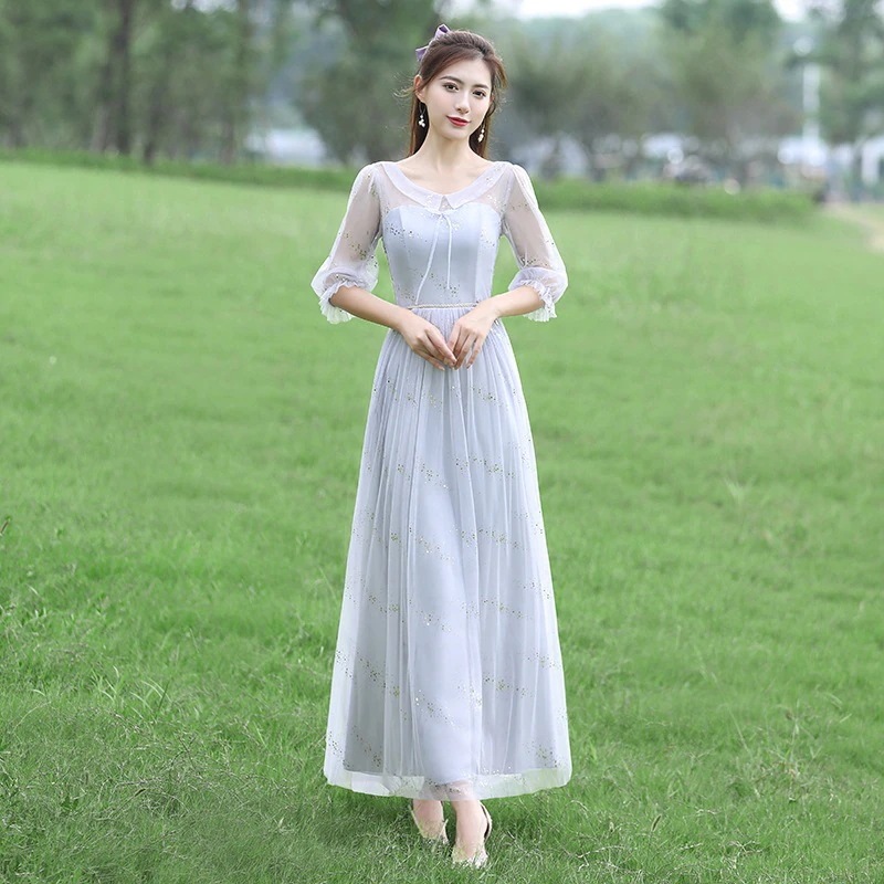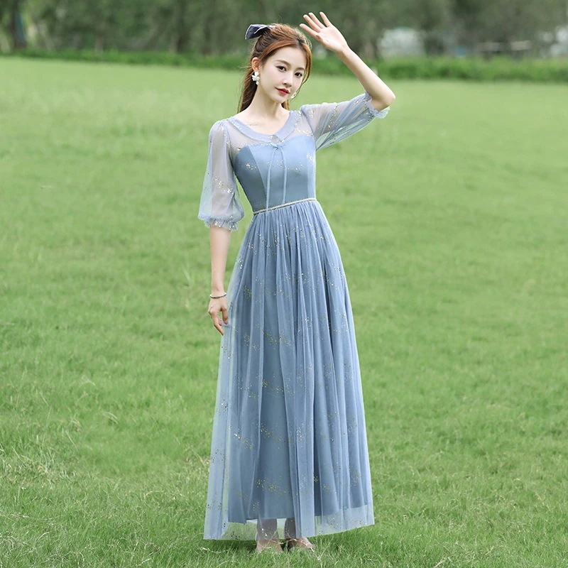 ブライズメイド ドレス ウェディングドレス ロング フォーマルドレス パーティードレス Aライン フレア 結婚式 ワンピース マキシ丈 ロング丈 記念日 ダンス衣装 あずき色 くすんだブルー グレー
