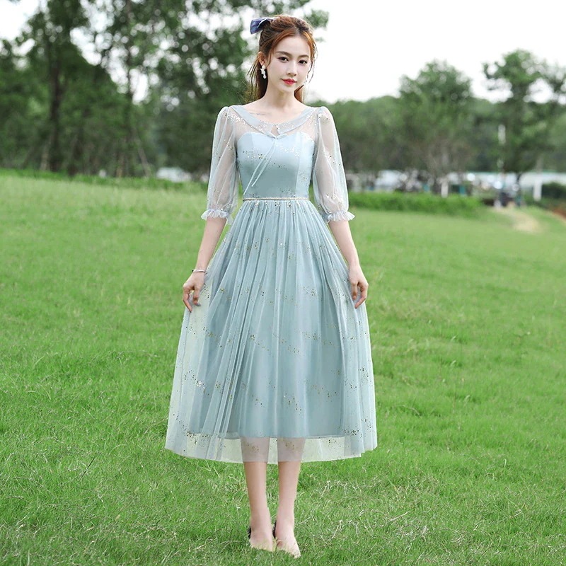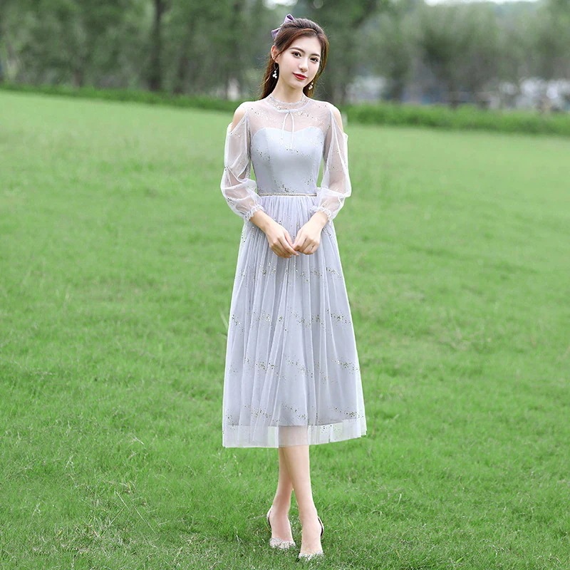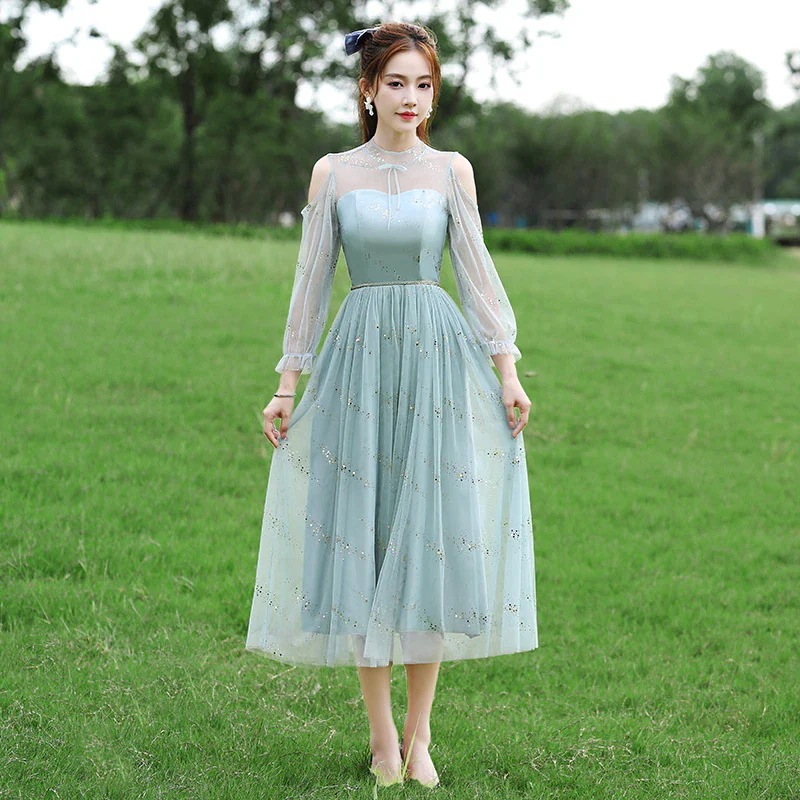 ブライズメイド ドレス ウェディングドレス ロング フォーマルドレス パーティードレス Aライン フレア 結婚式 ワンピース マキシ丈 ロング丈 記念日 ダンス衣装 あずき色 くすんだブルー グレー