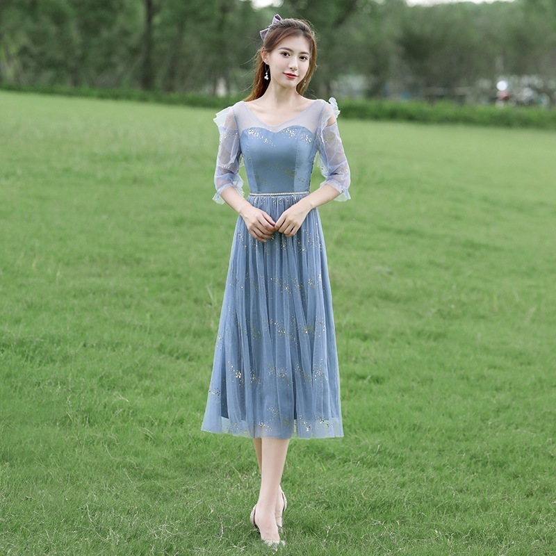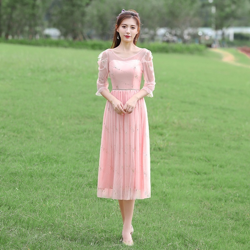 ドレス ブライズメイド ドレス ウェディングドレス フォーマルドレス ミディアム丈 ひざ下丈 ロング パーティードレス Aライン フレア 結婚式 ワンピース マキシ丈  記念日 ダンス衣装