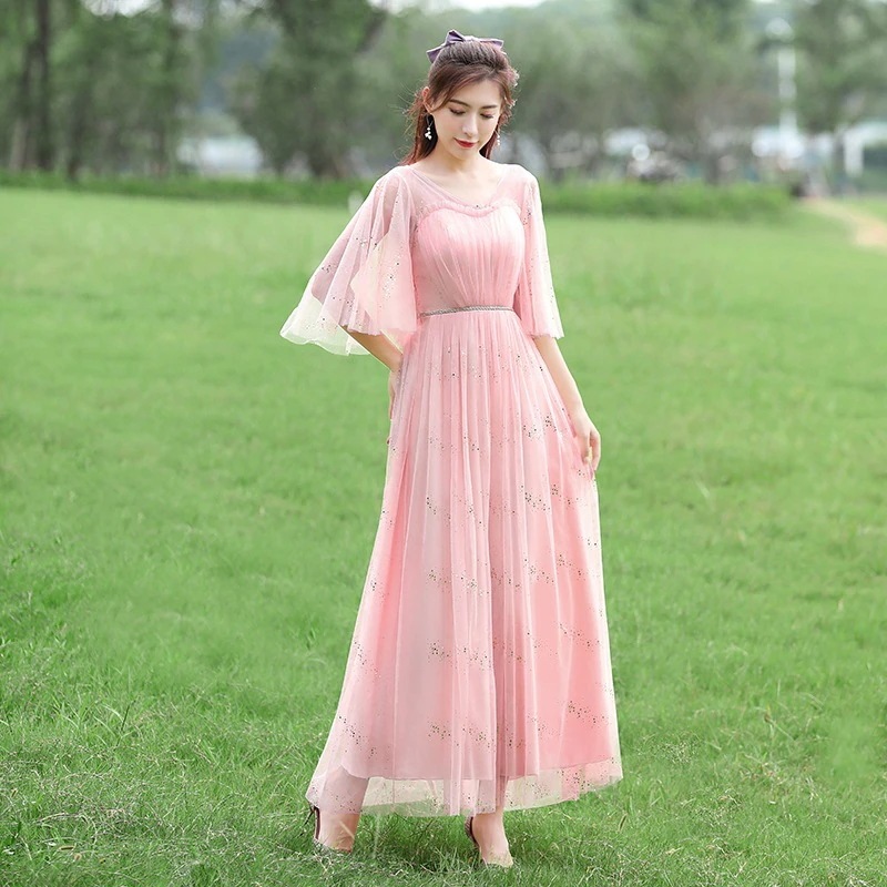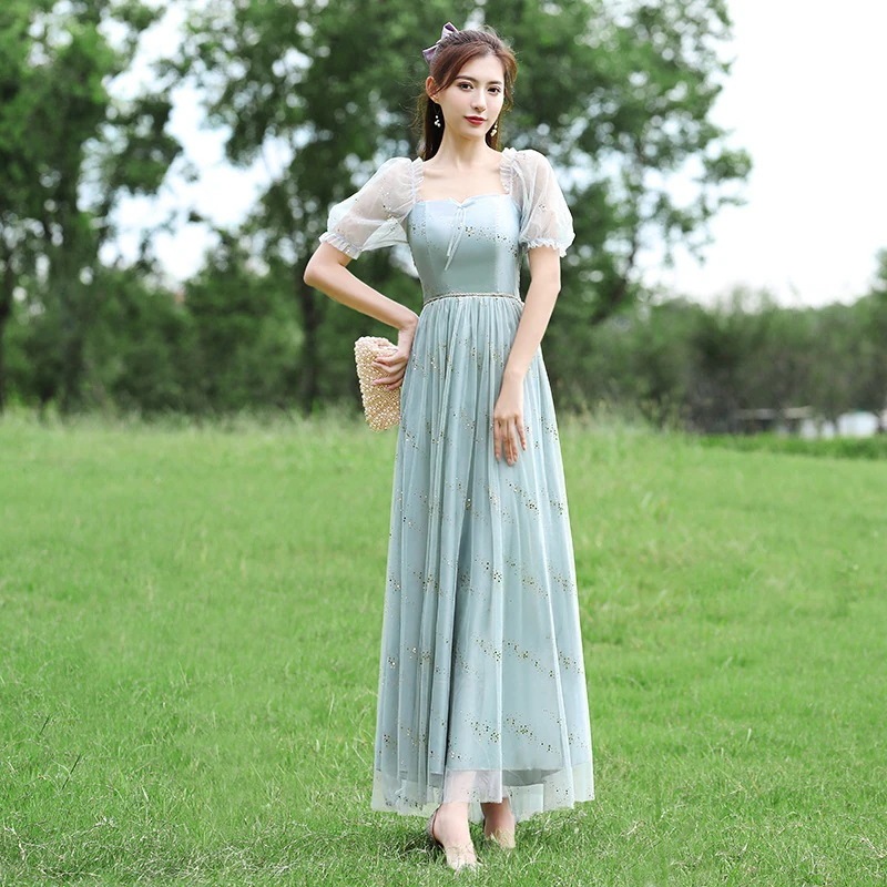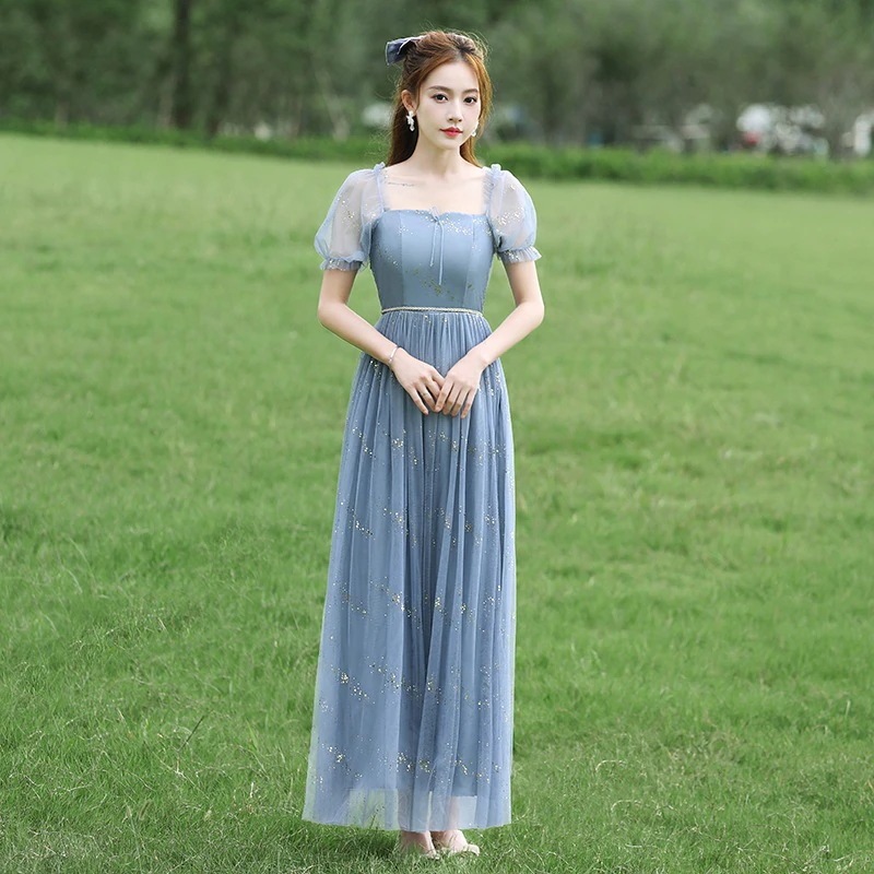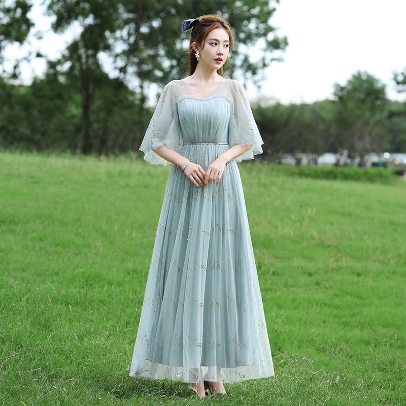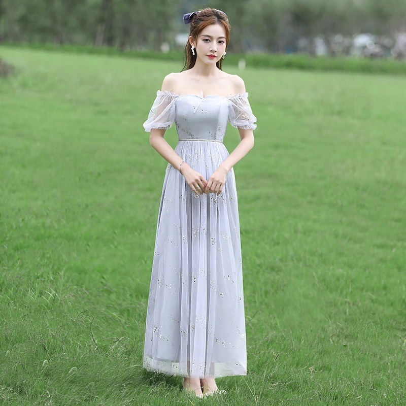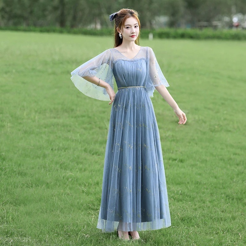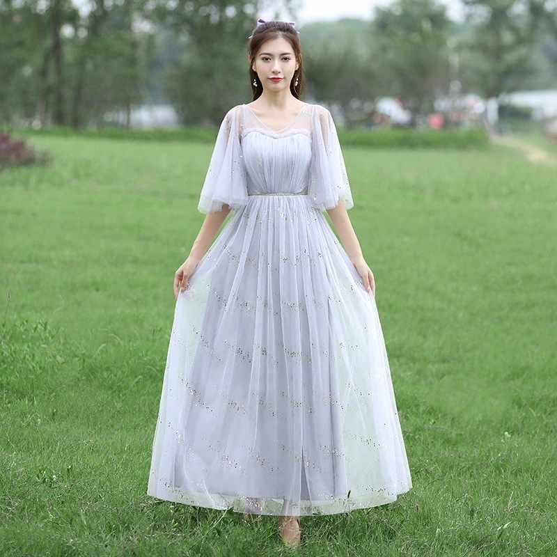 ブライズメイド ドレス ウェディングドレス ロング フォーマルドレス パーティードレス Aライン フレア 結婚式 ワンピース マキシ丈 ロング丈 記念日 ダンス衣装 あずき色 くすんだブルー グレー