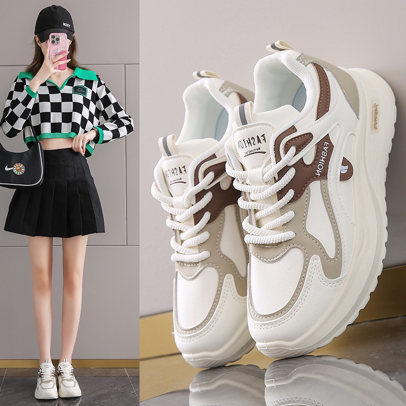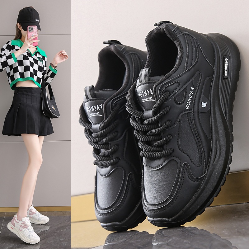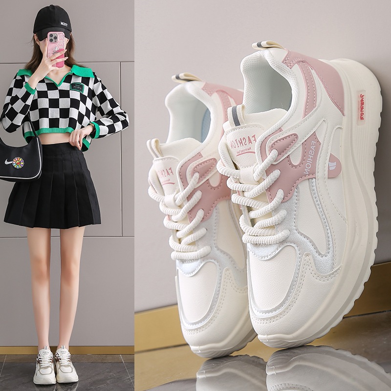 女子学生のための小さな白い靴韓国版スニーカー2025春と秋の新しい革の表面ガン学生超軽量ランニングスポーツシューズ